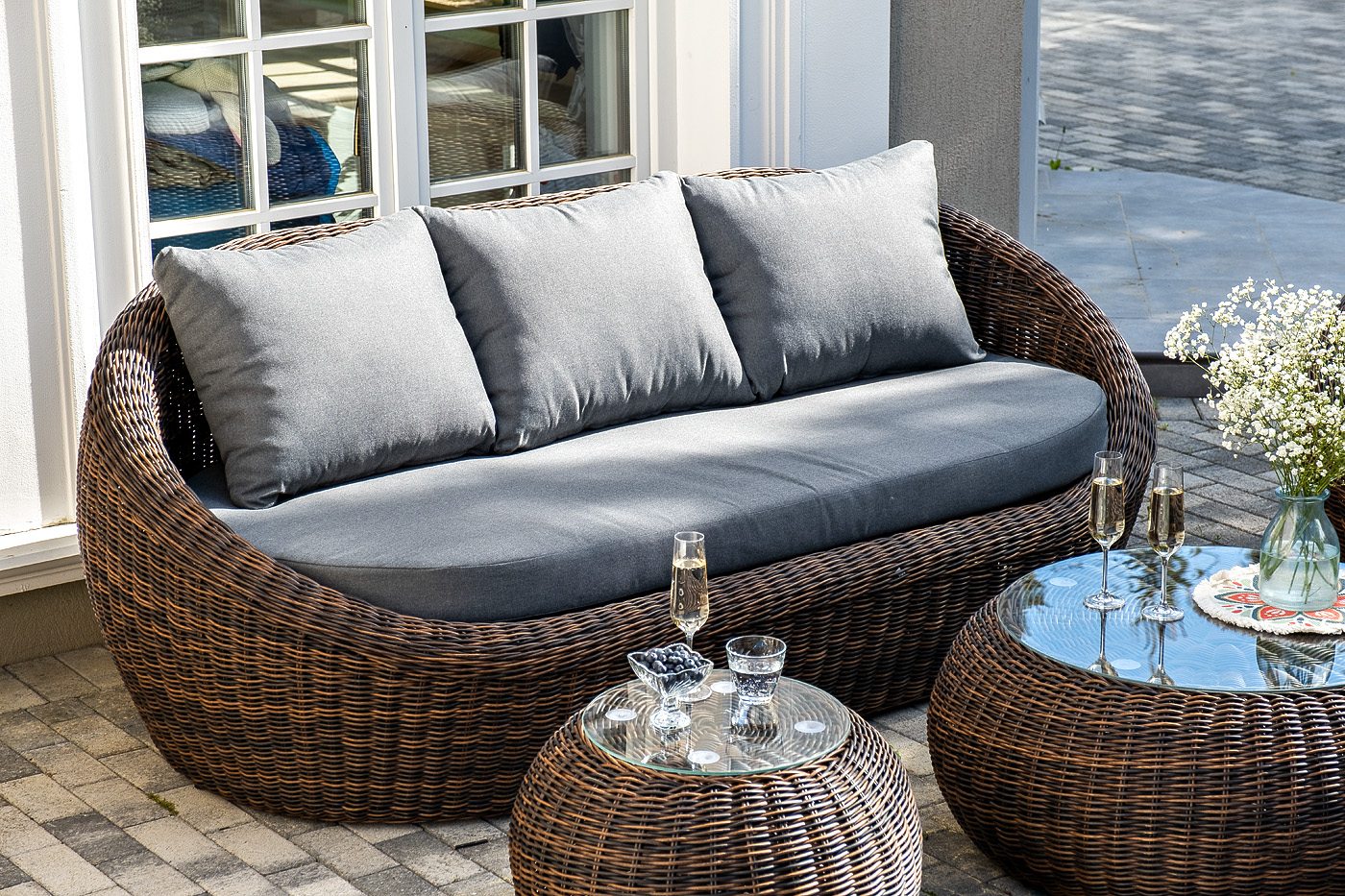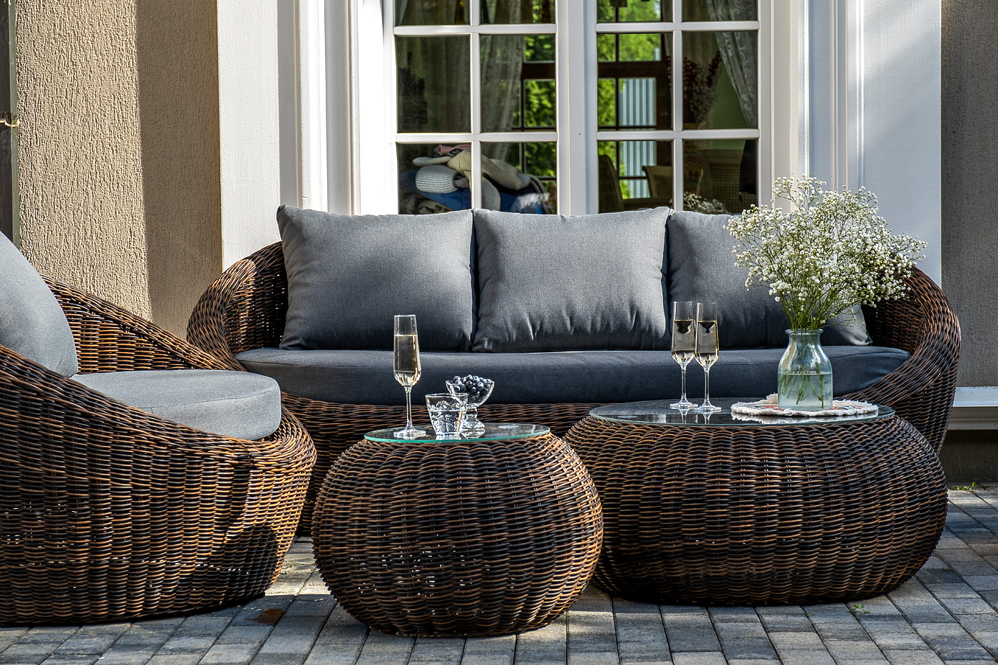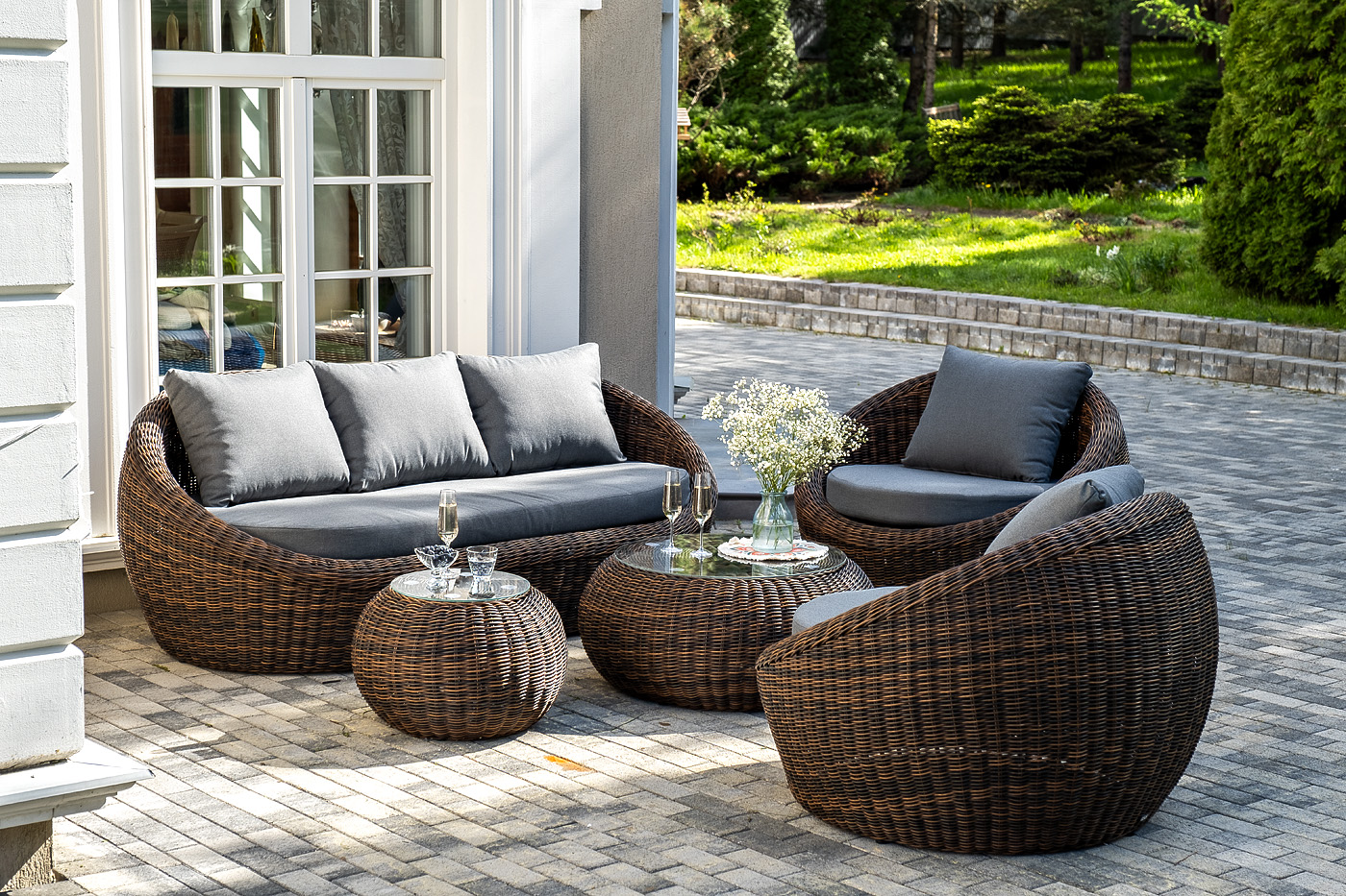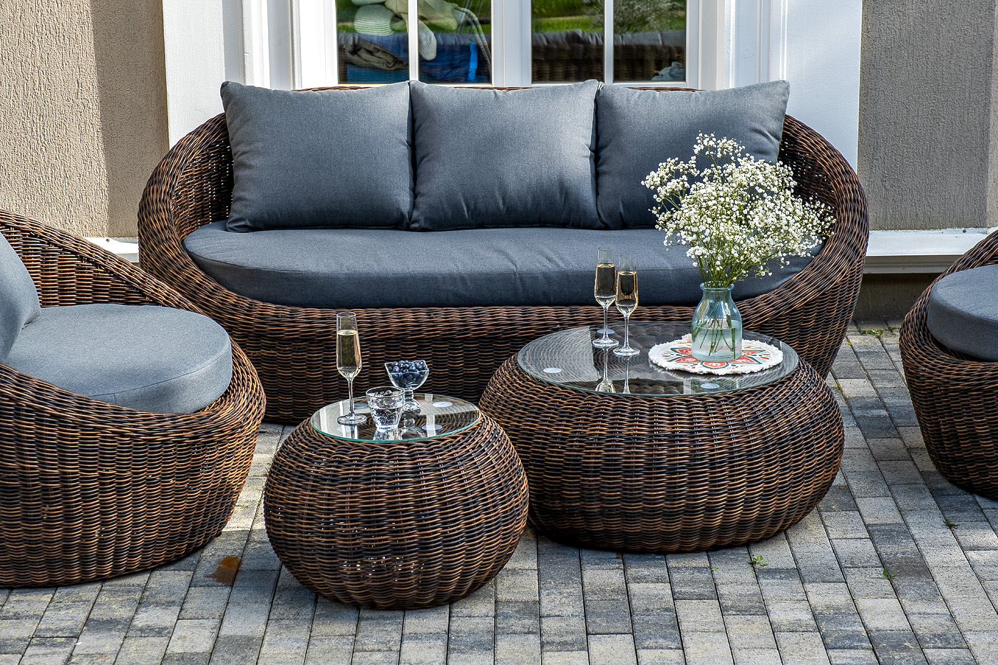 Комплект «Барселона» с плетением из искусственного круглого ротанга для обустройства лаунж-зоны.