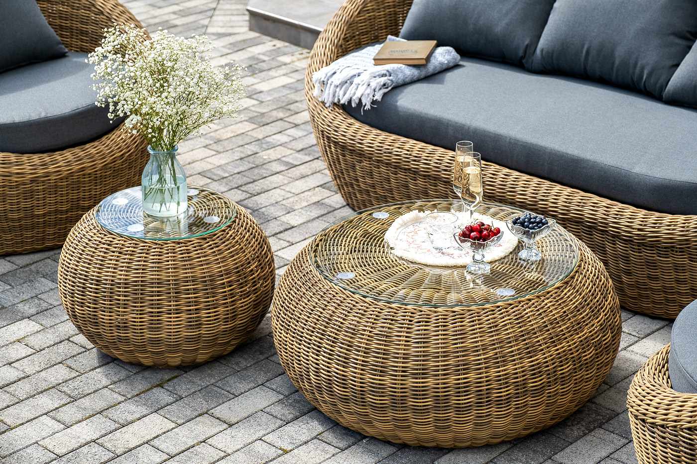 Поверхность плетеного столика представляет столешница из закаленного стекла – 5 мм.