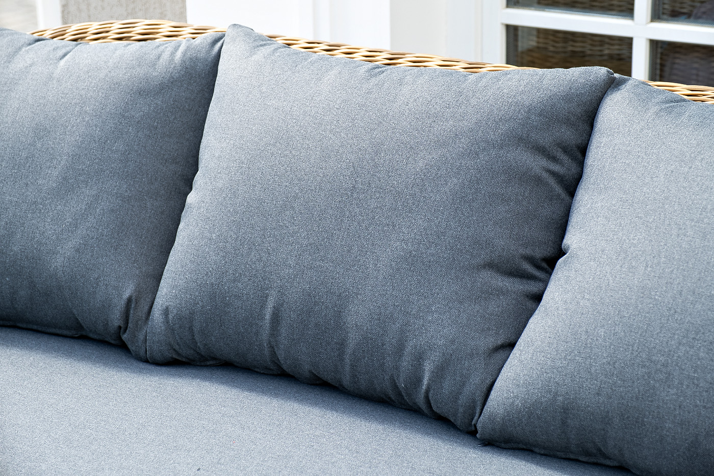 На креслах и диване предусмотрены мягкие подушки, съёмные чехлы которых пошиты из полиэстера, плотностью 300гр/м2. Ткань в обязательном порядке пропитывается влагоотталкивающими составами.