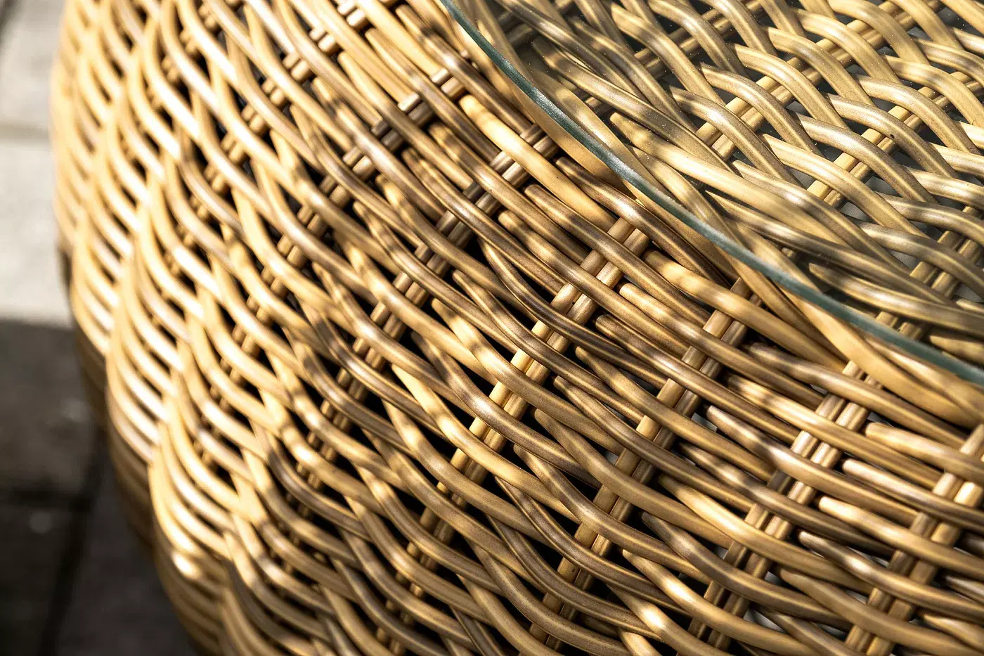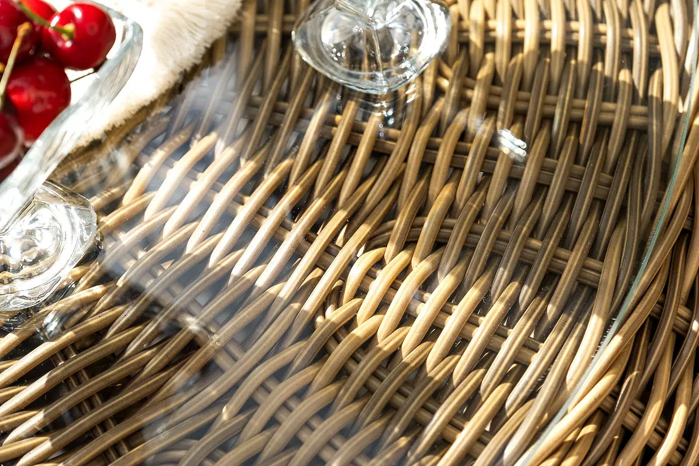 Поверхность плетеного столика представляет столешница из закаленного стекла – 5 мм.