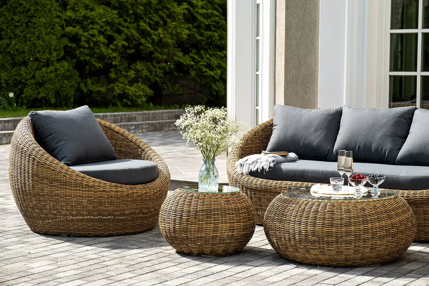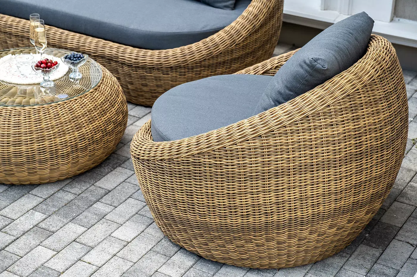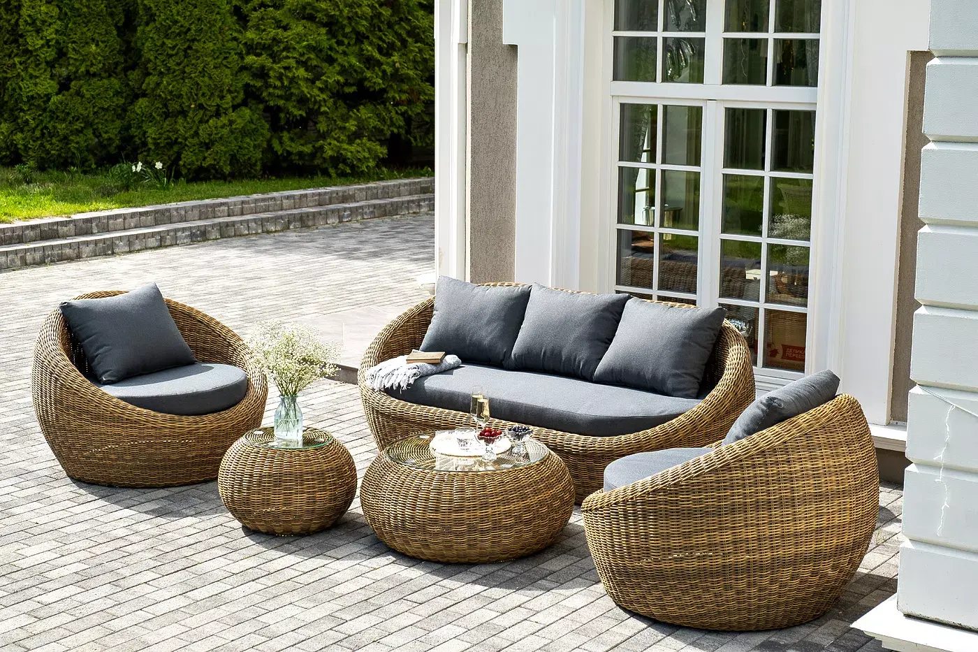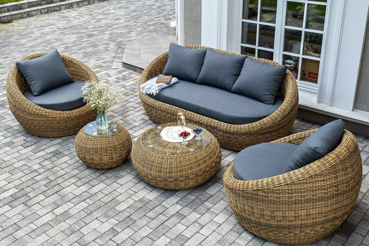 Комплект «Барселона» с плетением из искусственного круглого ротанга для обустройства лаунж-зоны.
