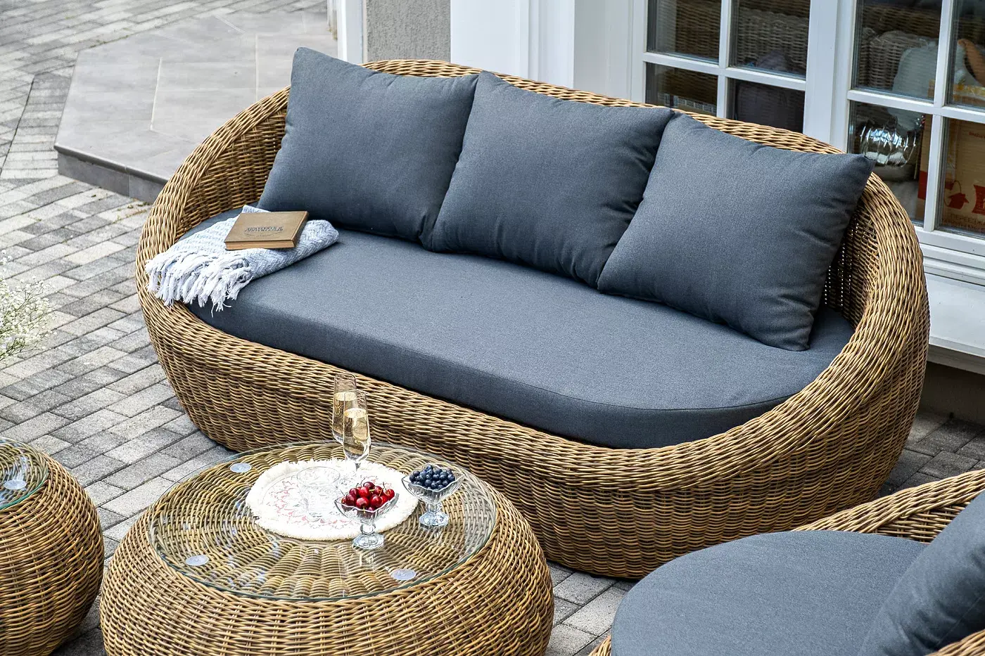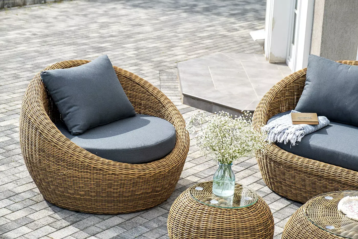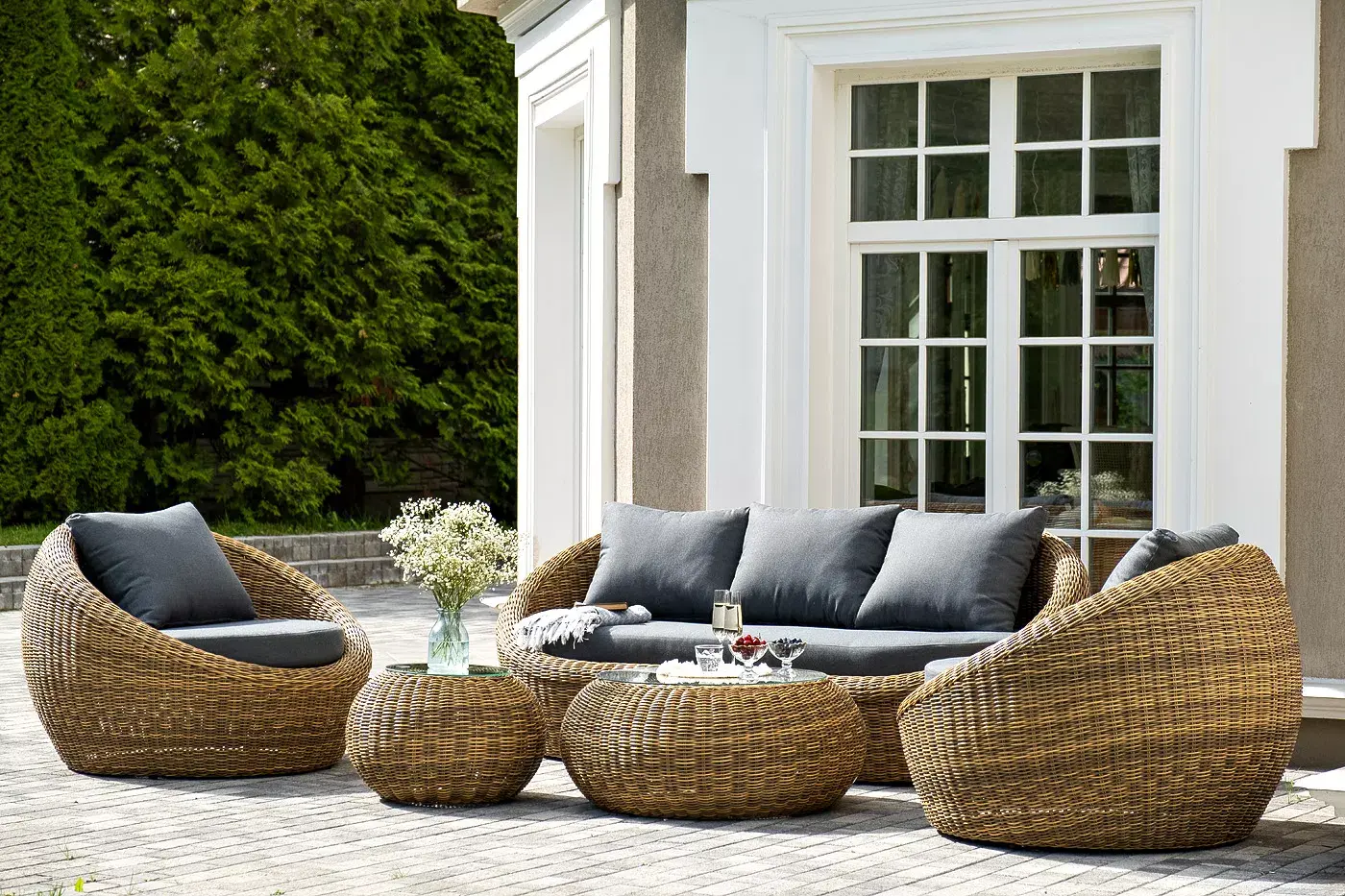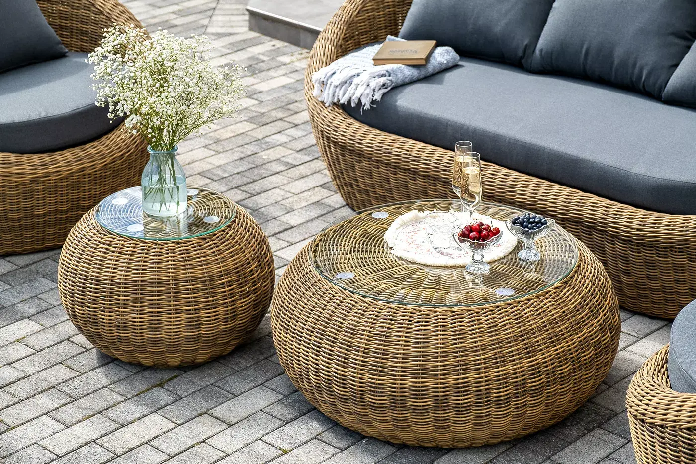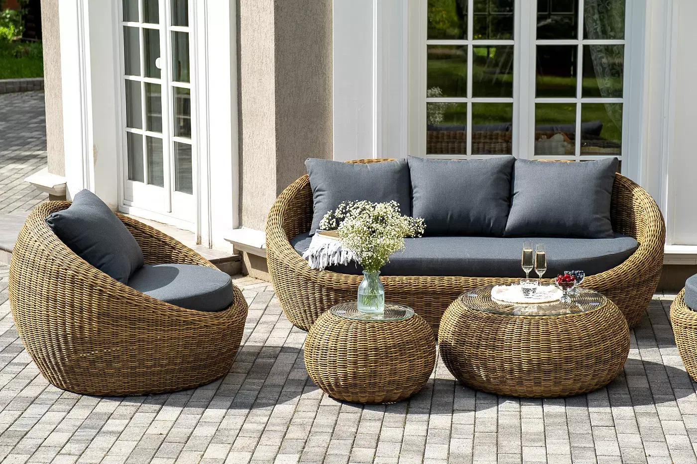 Комплект «Барселона» с плетением из искусственного круглого ротанга для обустройства лаунж-зоны.