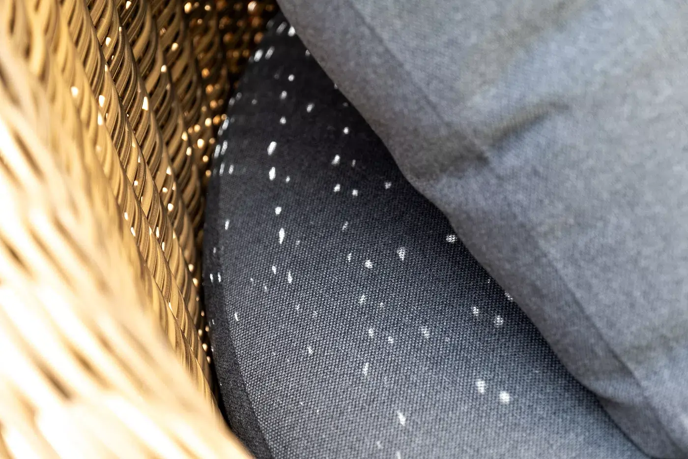 На креслах и диване предусмотрены мягкие подушки, съёмные чехлы которых пошиты из полиэстера, плотностью 300гр/м2. Ткань в обязательном порядке пропитывается влагоотталкивающими составами.