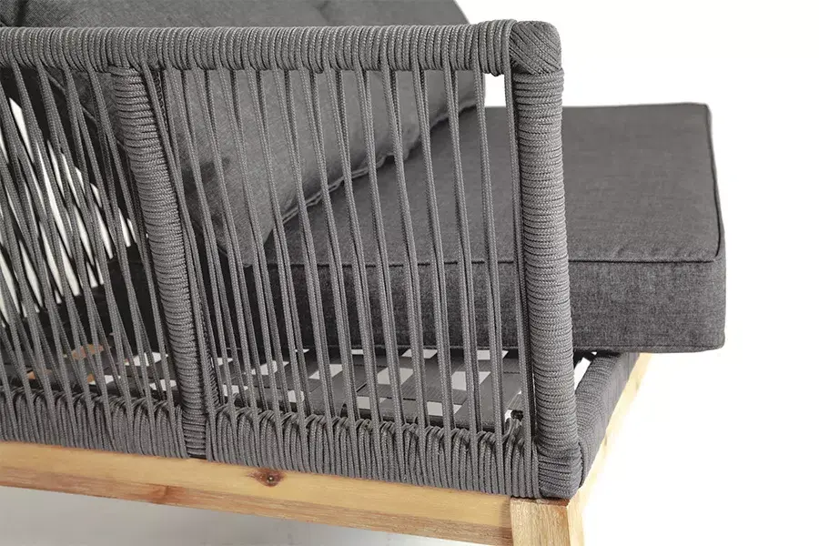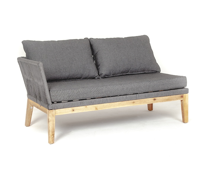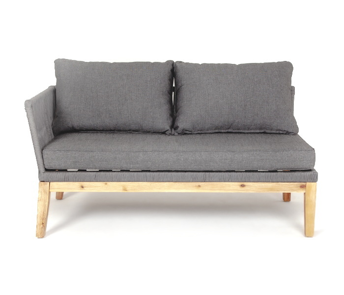«Барселона» диванный модуль боковой правый входит в состав дивана с аналогичным названием. Имеет деревянный каркас, оплетенный синтетической полиэфирной лентой - роупом серого цвета.