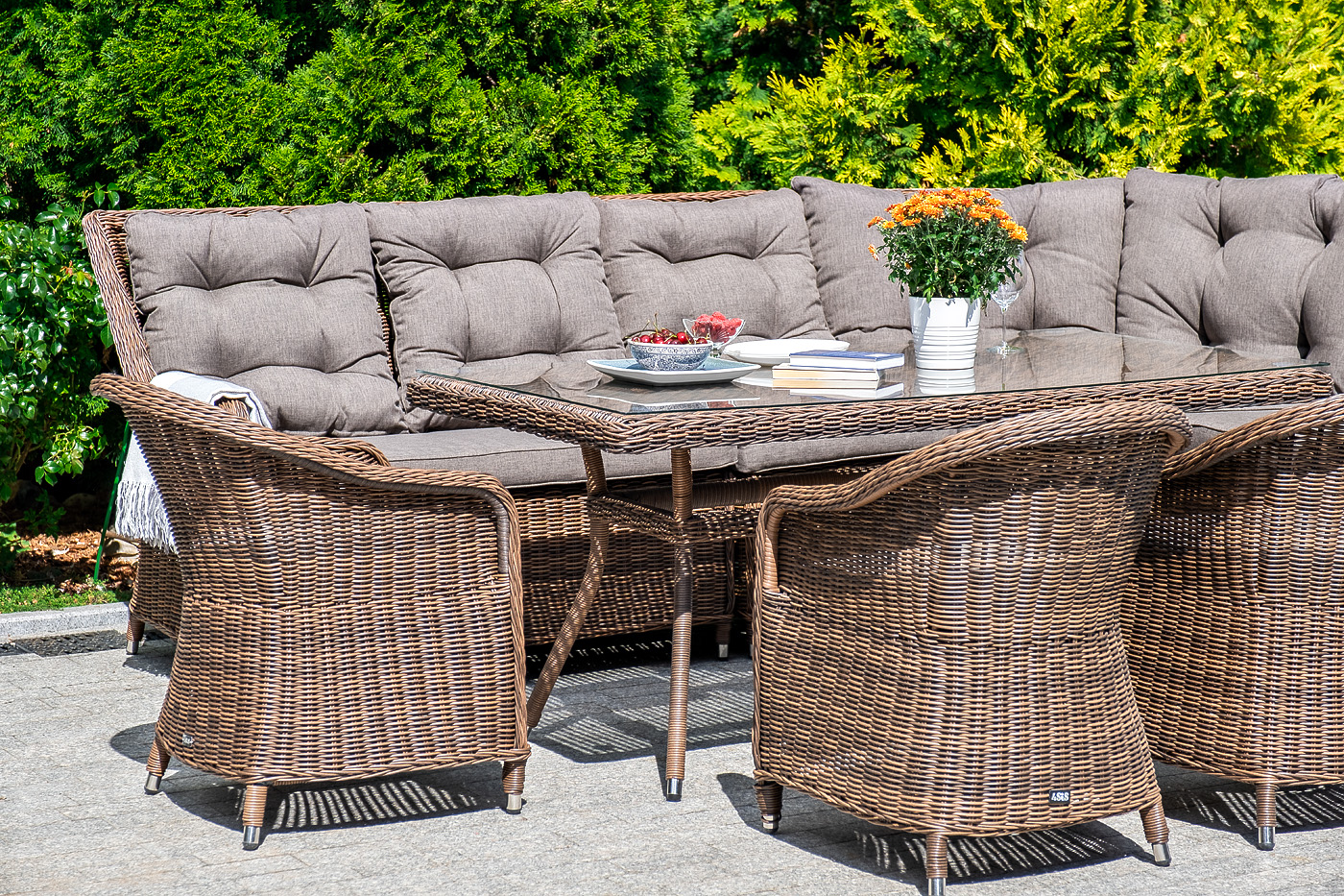 Плетеный правый модуль дивана «Бергамо», алюминиевый каркас, круглый искусственный ротанг, ручное плетение, цвет коричневый 1150×900×990 мм.