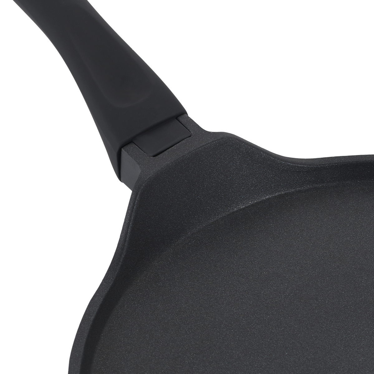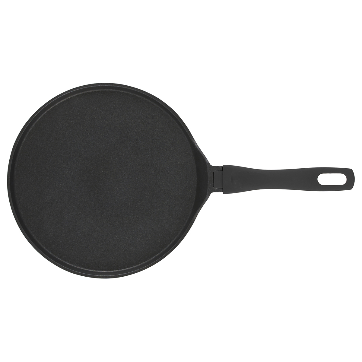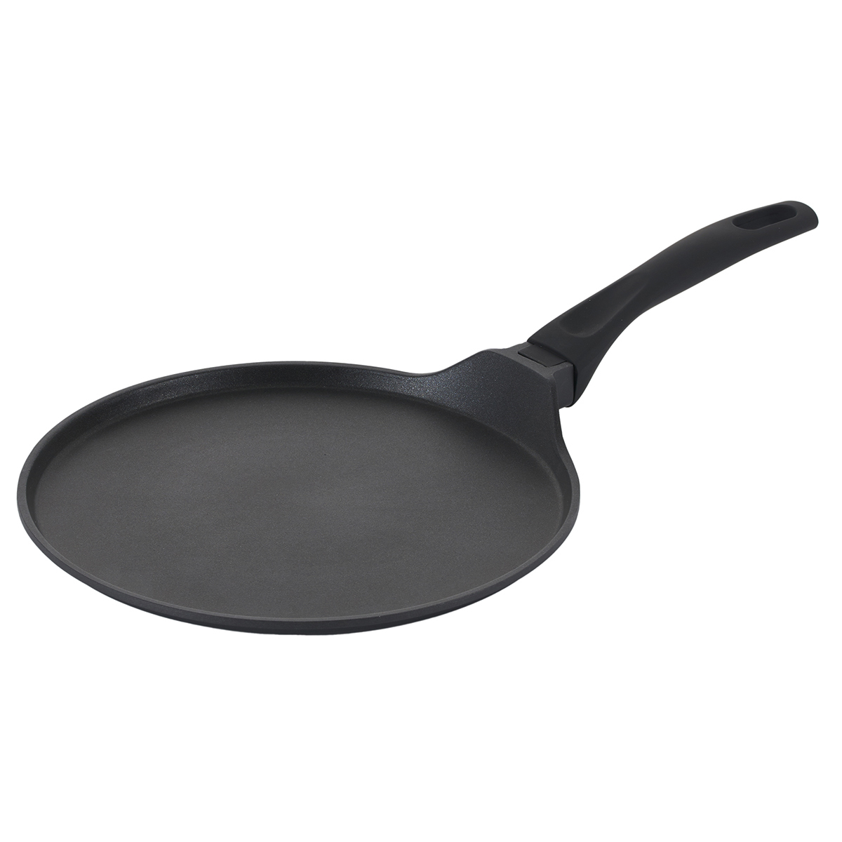 Классическая блинная сковорода из литого алюминия. Модель оснащена всем необходимым – антипригарным покрытием, индукционным дном, а также ручкой с покрытием soft touch, которое не нагревается при готовке. Диаметр дна модели составляет 25 см.