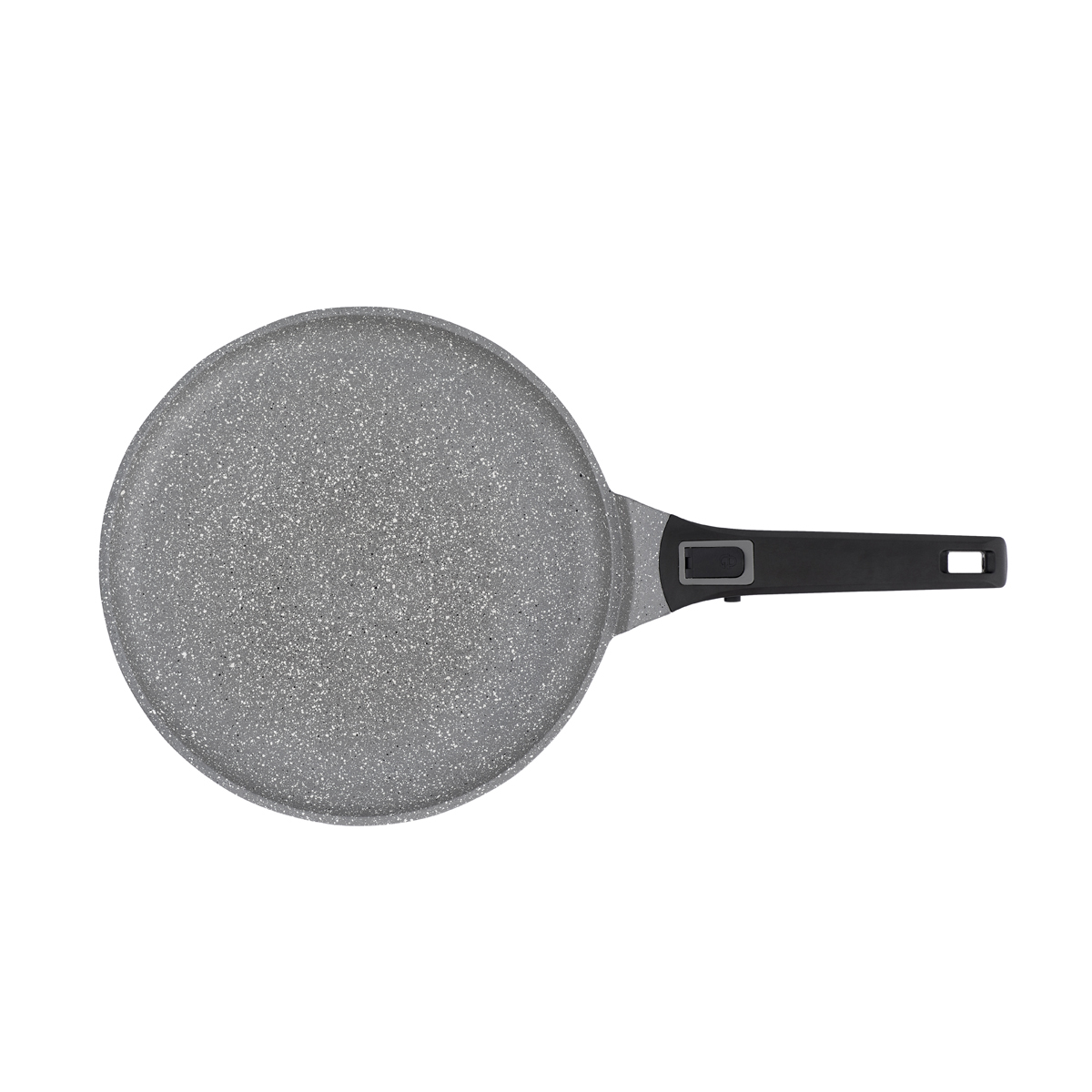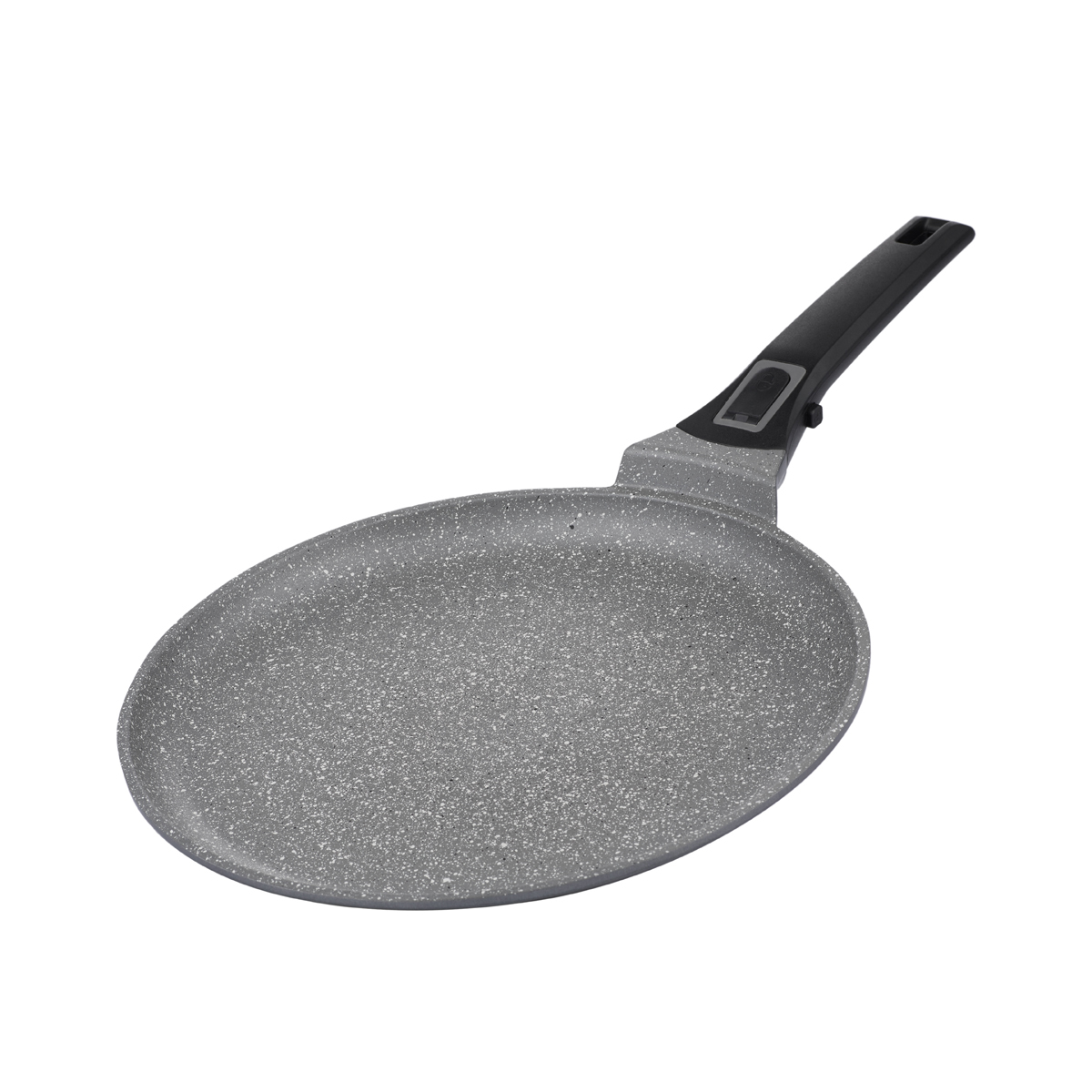 Корпус всех моделей посуды серии BATISTA изготовлен из литого алюминия, толщина стенок которого составляет 2 мм, а толщина дна – 4,5 мм. Надежность материала в сочетании с толщиной корпуса гарантирует долгий срок службы посуды. Стоит отметить трехслойное антипригарное покрытие Ilag Ultimate, съемные ручки и возможность использования посуды данной серии на индукционных плитах. Диаметр данной блинной сковороды составляет 28 см. Диаметр дна 22 см.