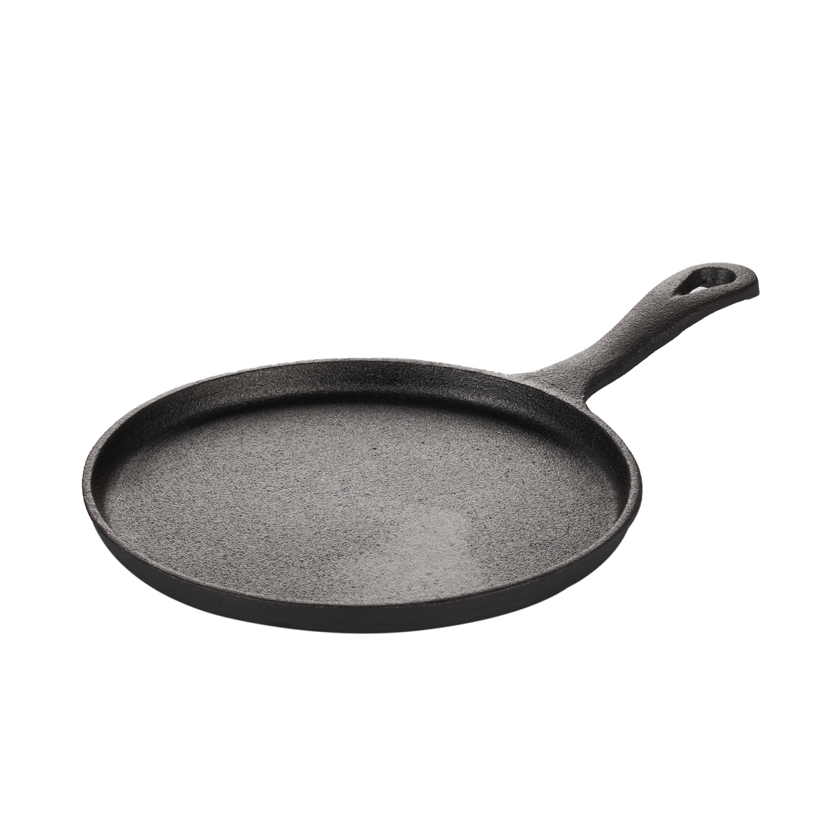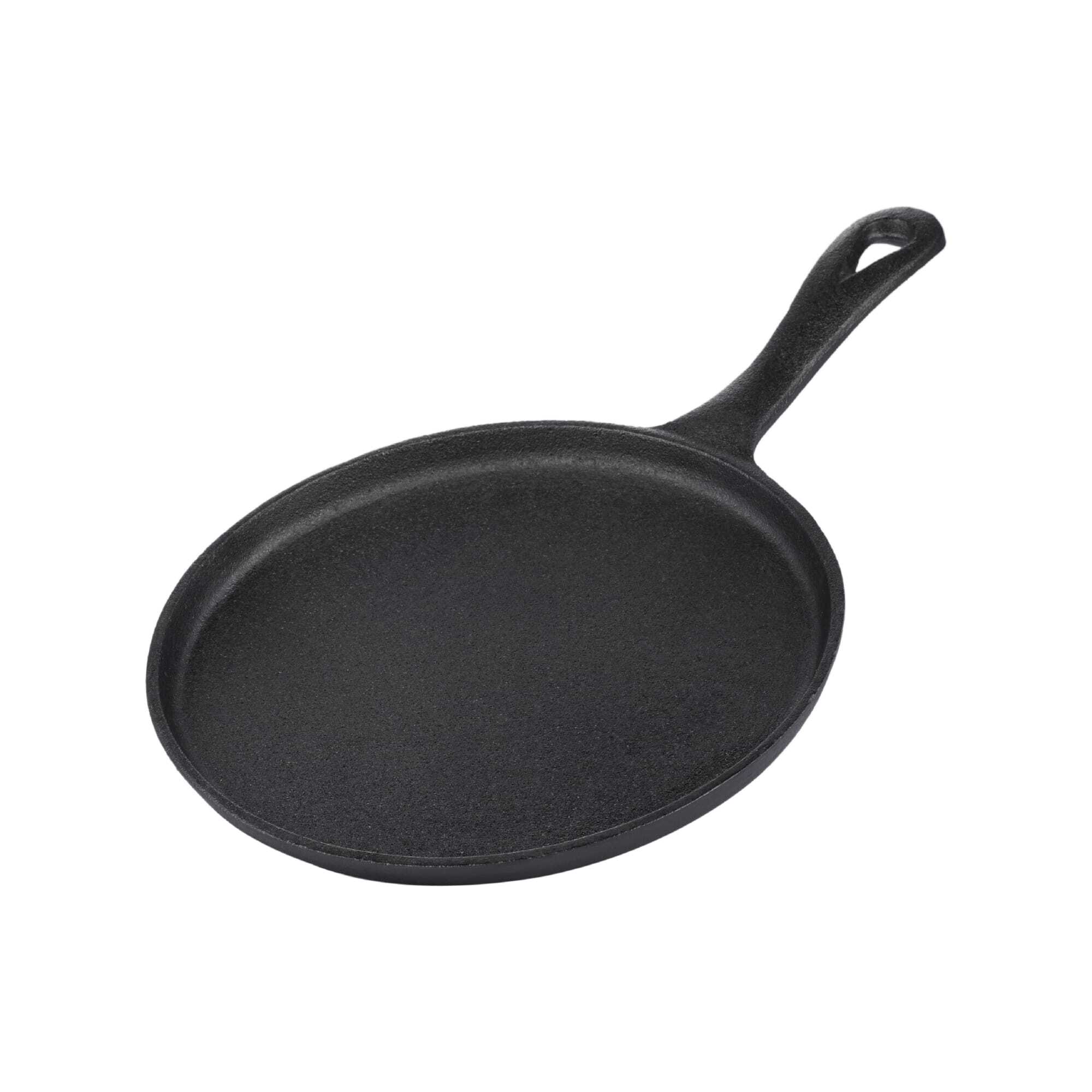 Классическая блинная сковорода из непокрытого чугуна диаметром 20 см. Невысокие бортики и антипригарные свойства чугуна позволят приготовить тонкие ажурные блинчики.