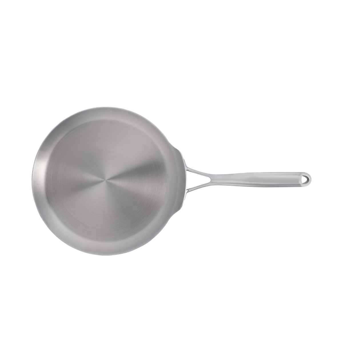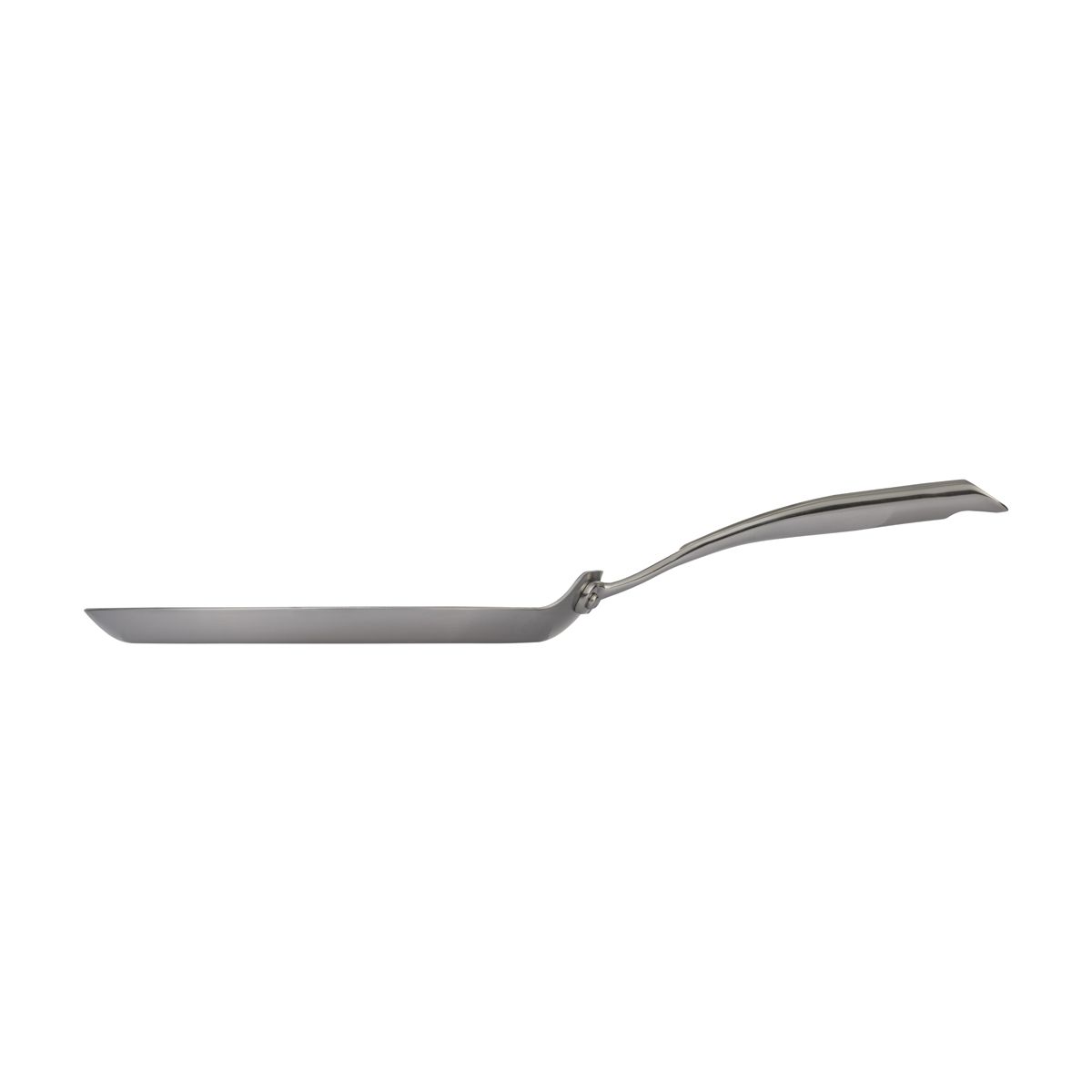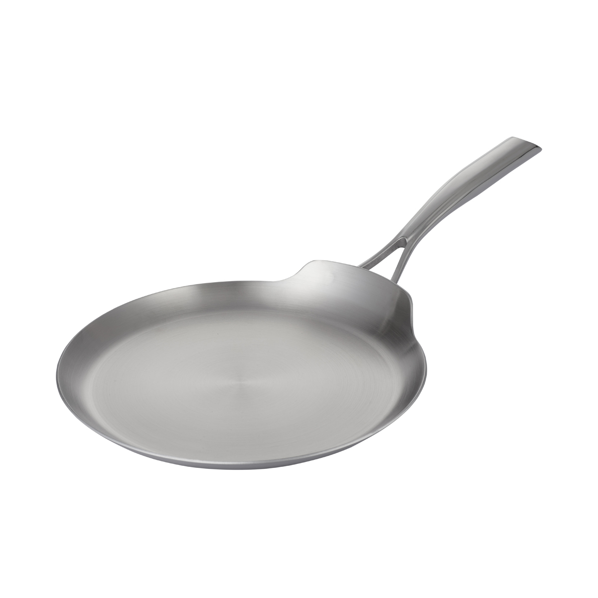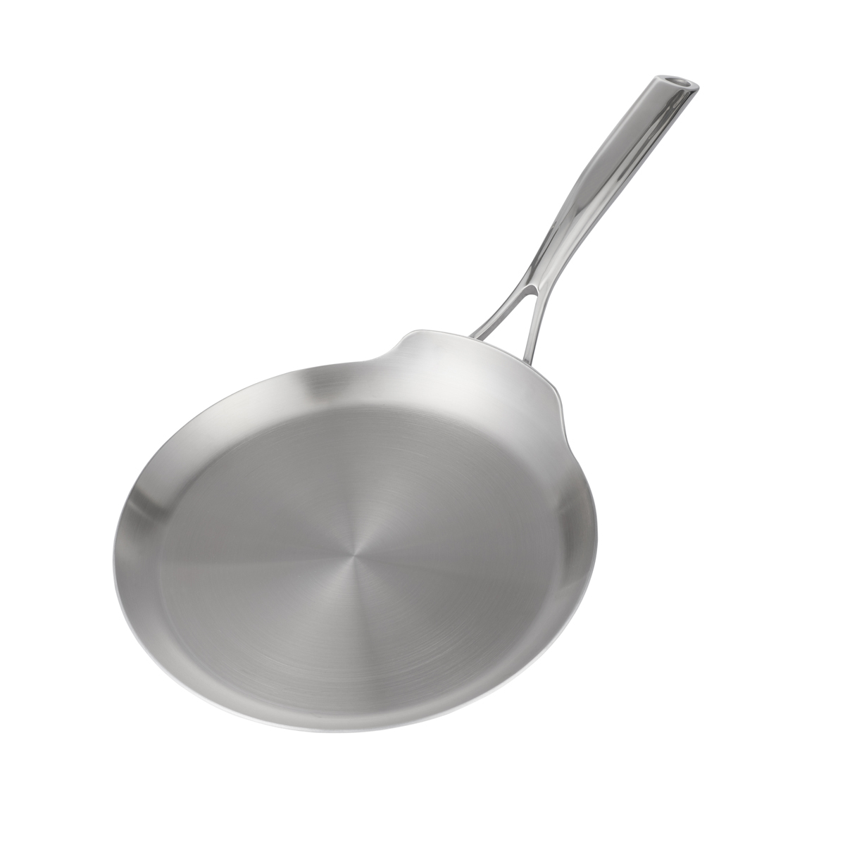 Серия сковород Ellis создана специально для жарки блинов. Сковороды изготовлены из качественной нержавеющей стали марки 18/10 и имеют трехслойное дно для более равномерного и быстрого нагрева. Диаметр данной модели составляет 28 см. Диаметр дна 24 см. Толщина 2,5 мм.