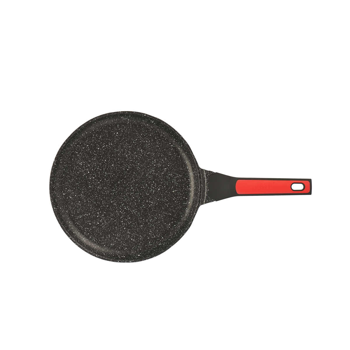 Серия посуды FAVORITE исключительно прочна и надежна благодаря прочному материалу корпуса, литому алюминию, который к тому же имеет довольно внушительную толщину – 4,5 мм в районе дна и 1,8 мм в районе стенок. Модели серии FAVORITE отличаются не только надежностью, но и удобством при готовке, которое обеспечивают антипригарное гранитное покрытие Whitford QuanTanium и бакелитовая ручка с покрытием Soft-touch. Первое практически исключает пригорание пищи при готовке, а вторая позволяет брать горячую сковороду без использования прихватки. Все предметы серии подходят для использования на индукционных плитах, диаметр этой блинной сковороды составляет 28 см.