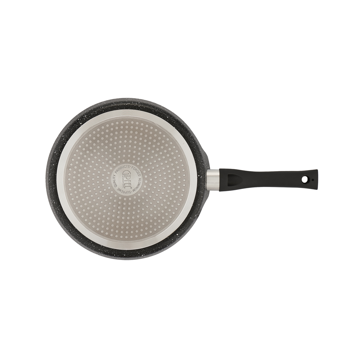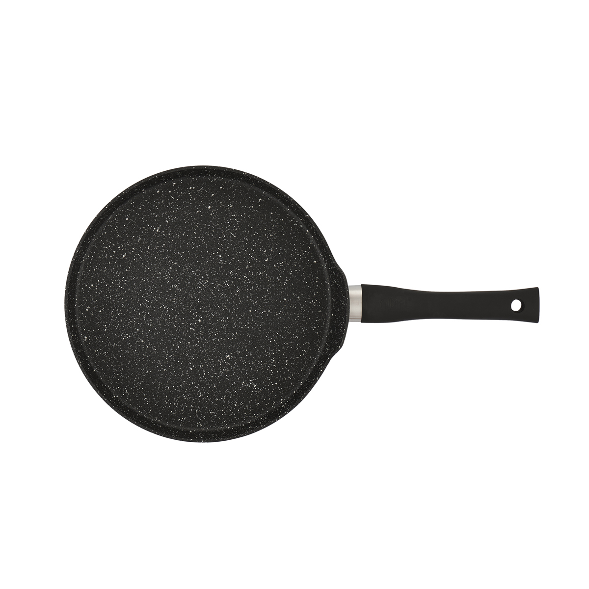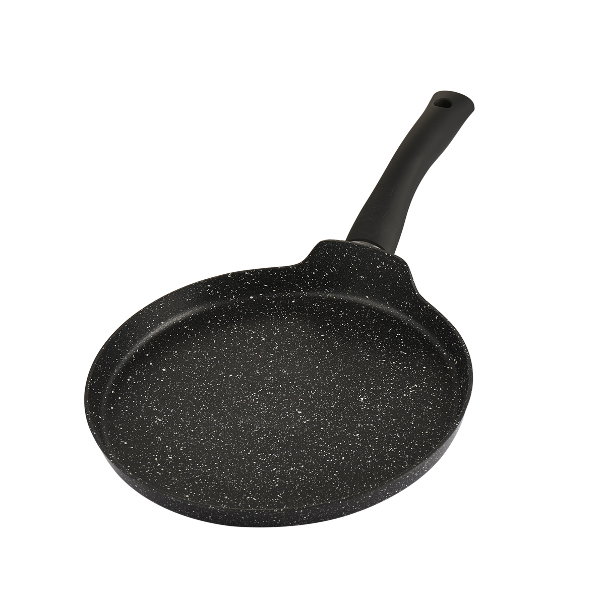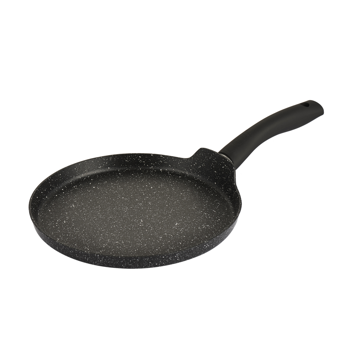 Серия классических сковород MABELLE изготовлена из качественного алюминиевого сплава, все модели оснащены двухслойным антипригарным покрытием и бакелитовой ручкой. Одна часть сковород MABELLE изготовлена в классическом черном цвете, другая – в светло-сером. Диаметр данной блинной сковороды составляет 26 см, она подходит для готовки на индукционных плитах. Диаметр индукционного дна сковороды 21 см.
