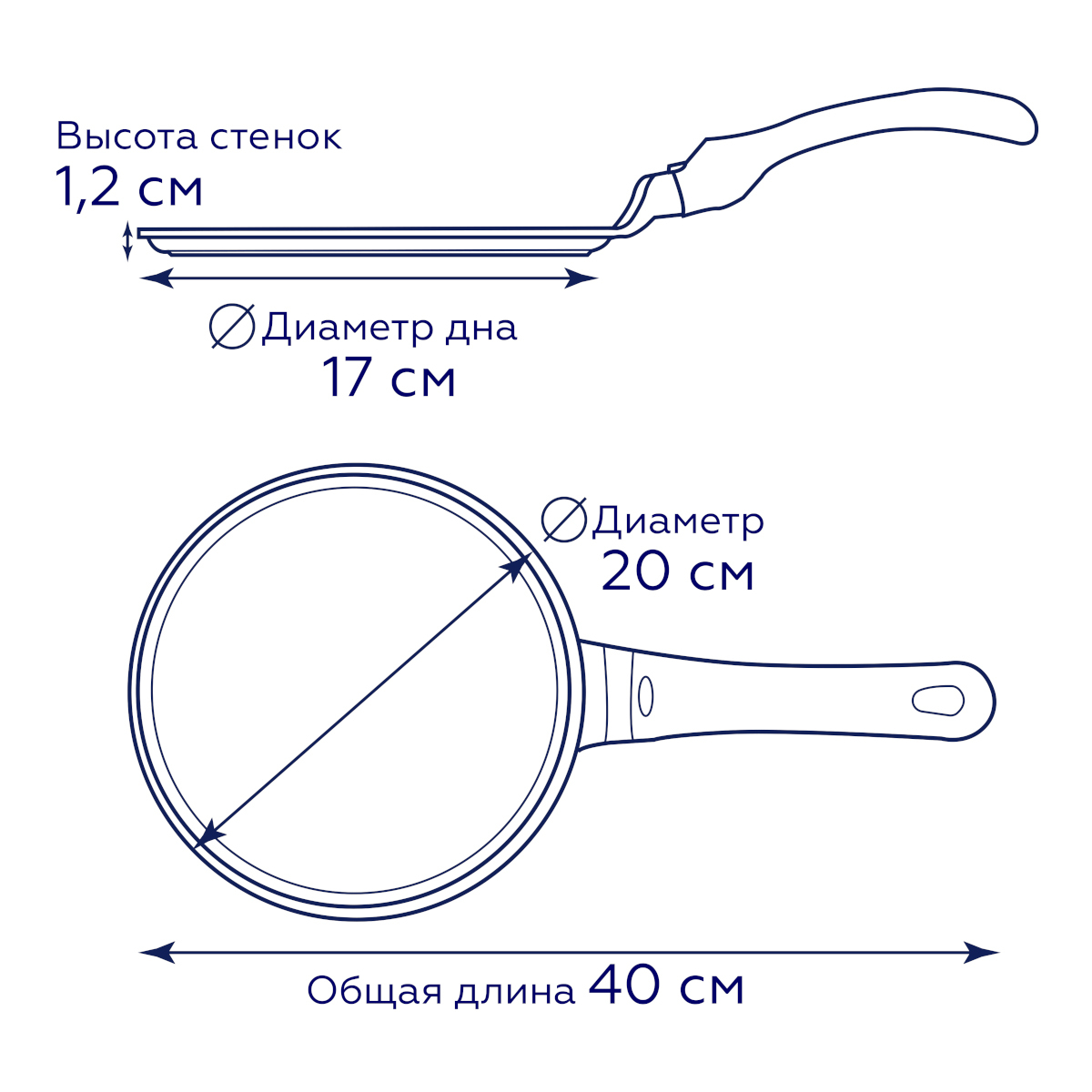 Сковорода диаметром 20 см идеально подходит для выпекания ровных и тонких блинчиков, ее быстро и удобно мыть.