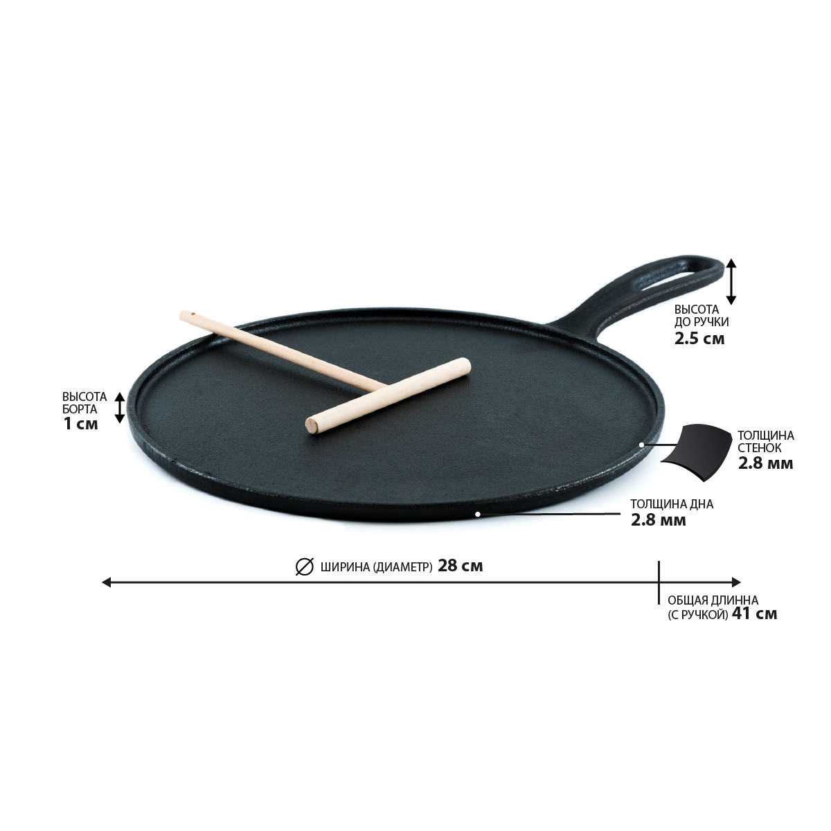 Сковорода для блинов Gipfel Violoncelo 1336 выполнена из чугуна без покрытия, сковорода продаётся в комплекте с деревянным распределителем для выпекания блинов.