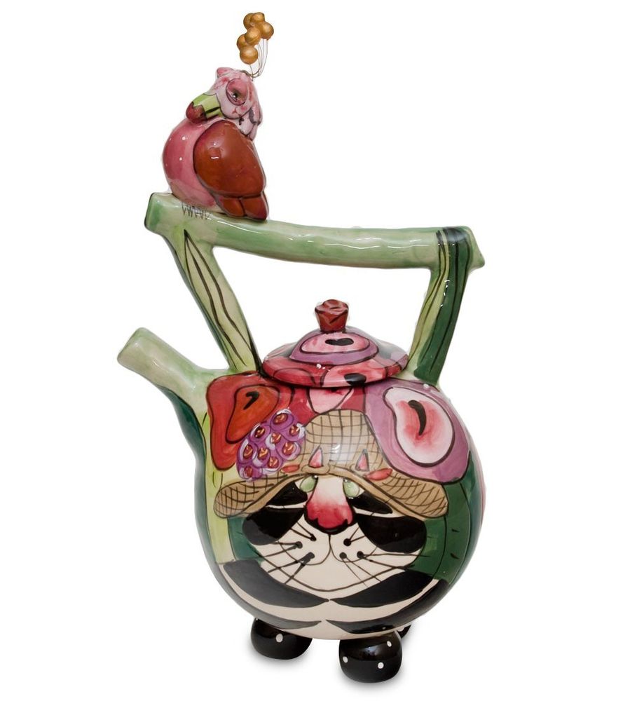 Заварочный чайник ''Кот Кланси и птичка''.