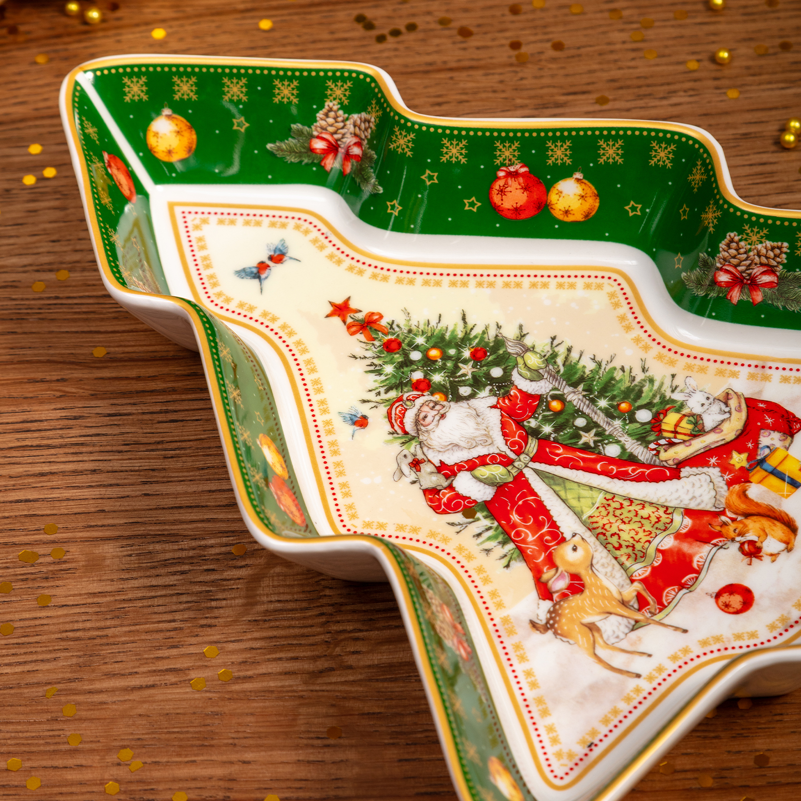 ТМ LEFARD New Year Collection готовы украсить праздничный новогодний стол и радовать всех в самые ожидаемые дни в году. С 1699 года указам Петра Первого Новый год празднуется в ночь на 1 января каждого года (по юлианскому календарю). Символом праздника стал дедушка с белой бородой, имя которого - Дед Мороз, и его помощница - девочка из снега по имени Снегурочка. Изделия с любимыми персонажами и нарядной новогодней Елкой выполнены на тонкостенном высококачественном фарфоре. Посуда упакована в яркие коробки. Это прекрасный подарок. Продукция прошла сертификацию, безопасна для контакта с пищевыми продуктами. Можно использовать в СВЧ, не рекомендуется мыть в посудомоечных машинах во избежание повреждения золотой отводки (деколи) на изделиях.
