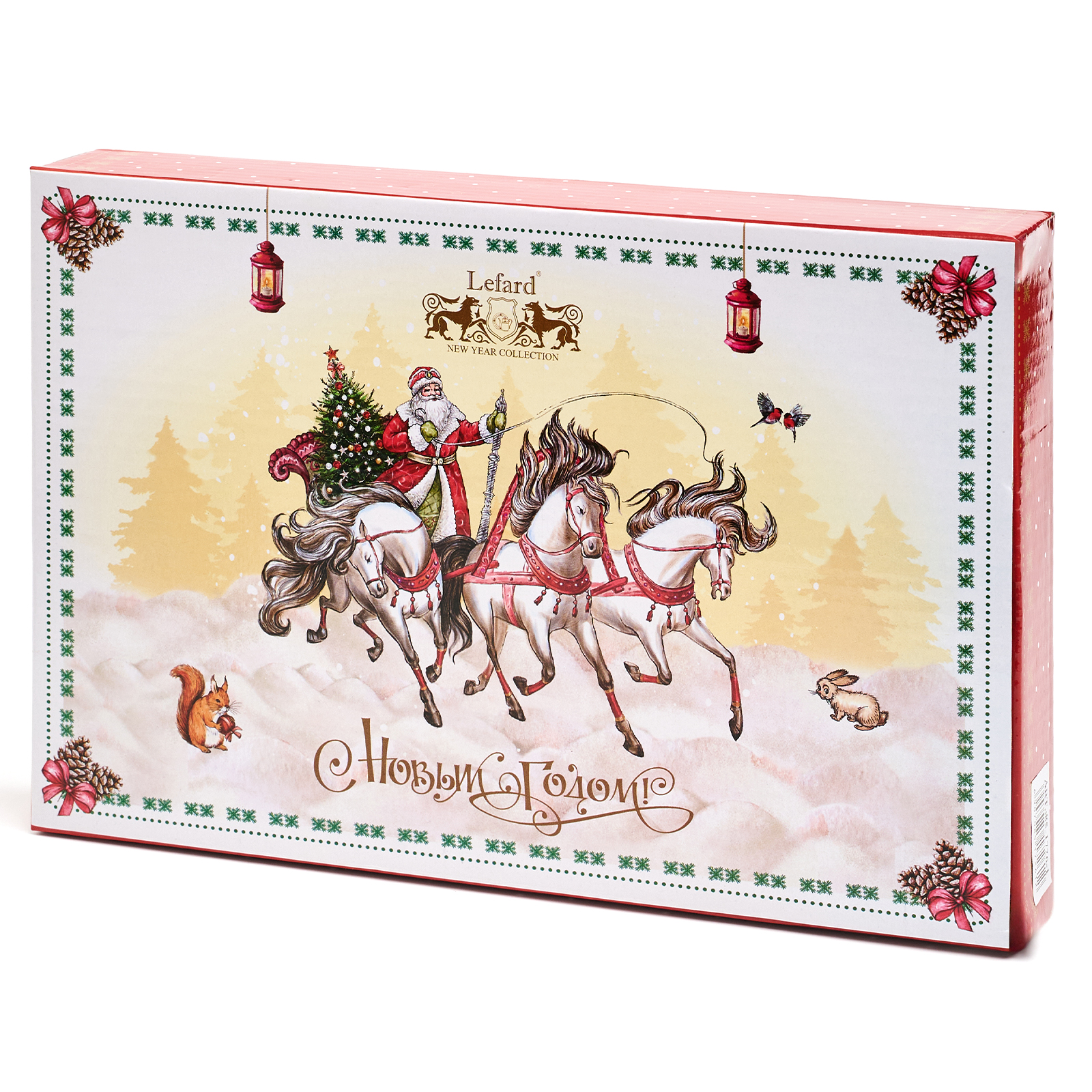ТМ LEFARD New Year Collection готовы украсить праздничный новогодний стол и радовать всех в самые ожидаемые дни в году. С 1699 года указам Петра Первого Новый год празднуется в ночь на 1 января каждого года (по юлианскому календарю). Символом праздника стал дедушка с белой бородой, имя которого - Дед Мороз, и его помощница - девочка из снега по имени Снегурочка. Изделия с любимыми персонажами и нарядной новогодней Елкой выполнены на тонкостенном высококачественном фарфоре. Посуда упакована в яркие коробки. Это прекрасный подарок. Продукция прошла сертификацию, безопасна для контакта с пищевыми продуктами. Можно использовать в СВЧ, не рекомендуется мыть в посудомоечных машинах во избежание повреждения золотой отводки (деколи) на изделиях.