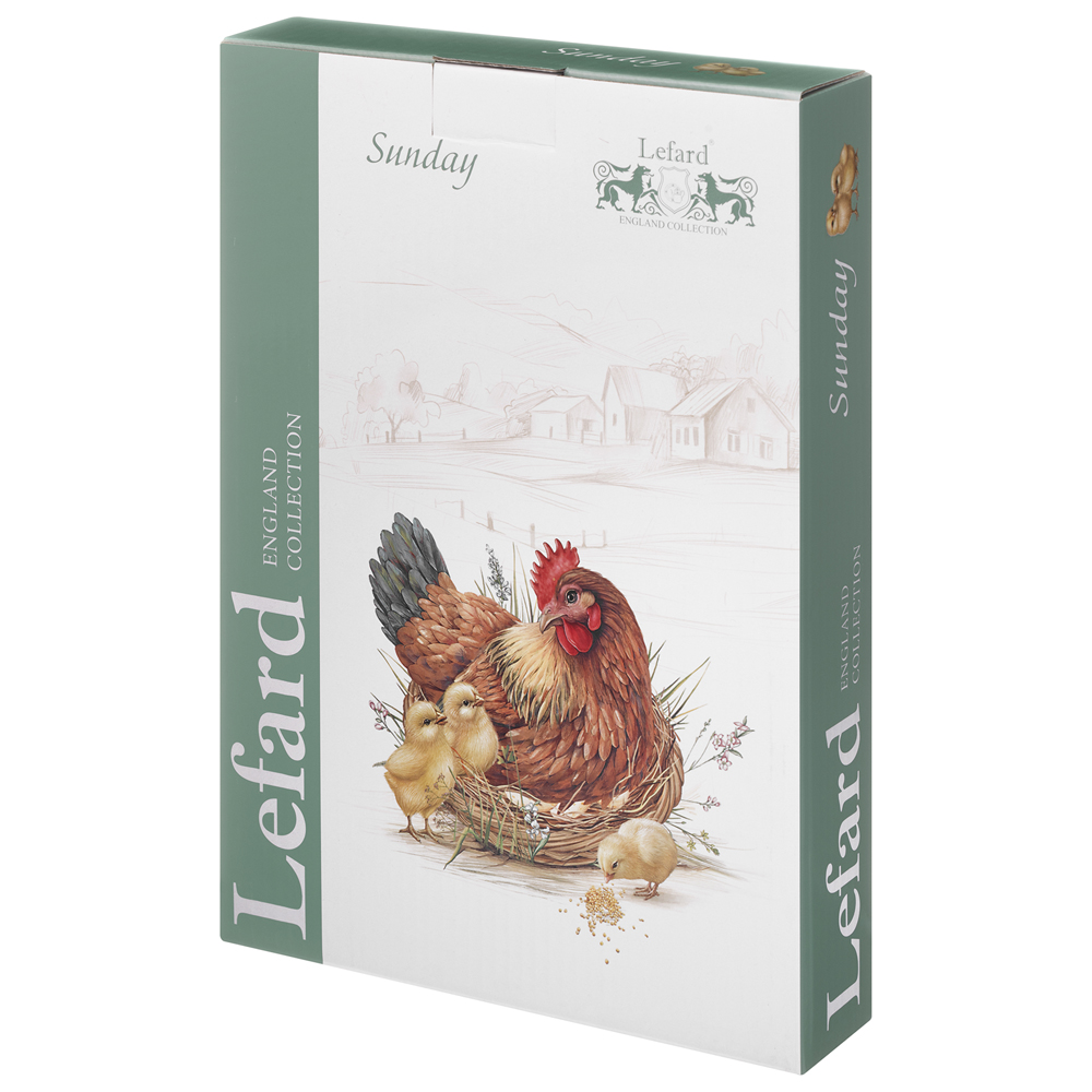 Новинки от ТМ Lefard в коллекции посуды “Sunday” пронизаны духом солнечного настроения и семейного уюта. Каждый предмет – тарелка, салатник или блюдо для яиц - выполнен с любовью, украсит стол и напомнит о простых радостях пасхального утра: аромате кулича, щебете птенцов и теплом свете, пробивающемся сквозь занавески. Посуда выполнена из тонкостенного белоснежного фарфора, украшена рельефным краем, напоминающим тонкие веточки ивы, сплетенные в корзину, покрыта блестящей, устойчивой к износу глазурью, оберегающей чудесный рисунок курочки-пеструшки с желтыми пушистыми цыплятами. Прекрасный подарок родным и близким, друзьям и коллегам к Пасхе и не только, в яркой красочной упаковке. Все изделия прошли сертификацию и безопасны для контакта с пищевыми продуктами, их можно смело мыть в посудомоечной машине и использовать в микроволновой печи.