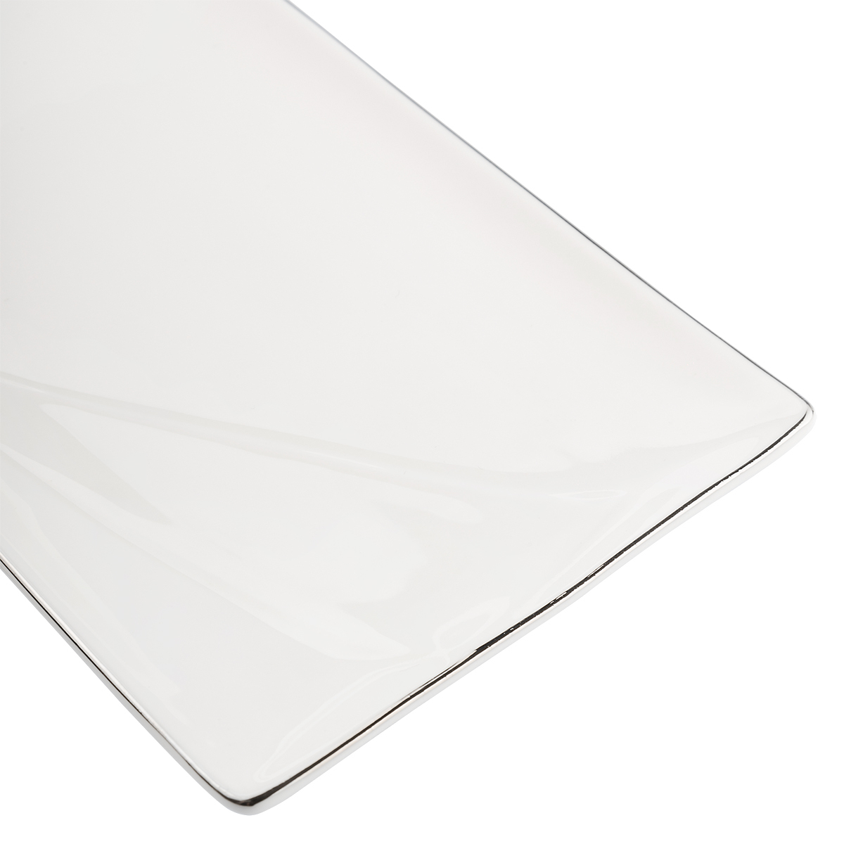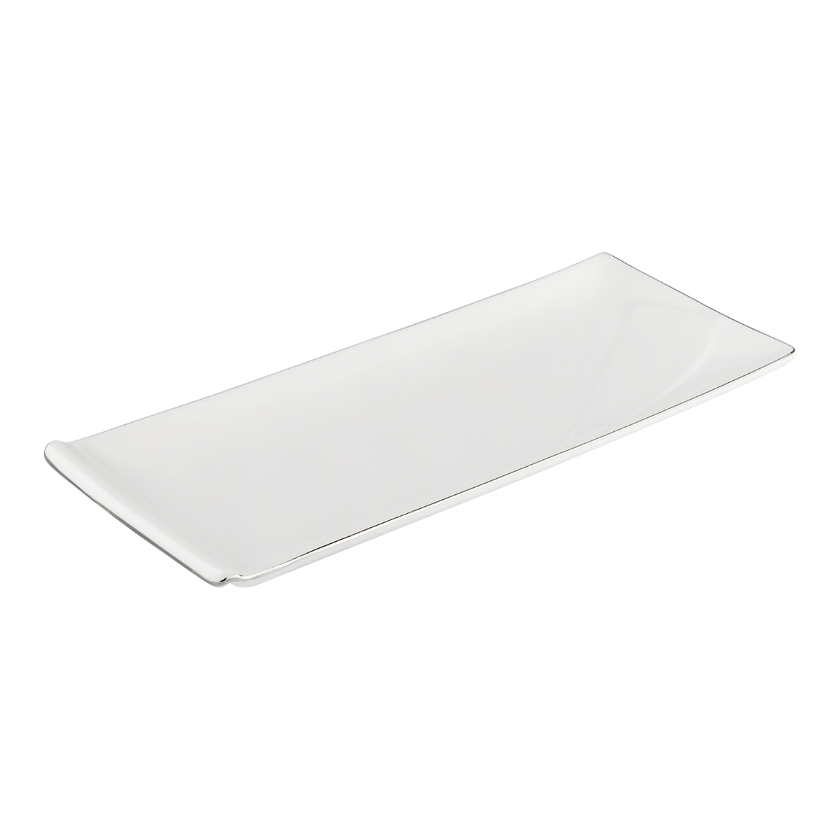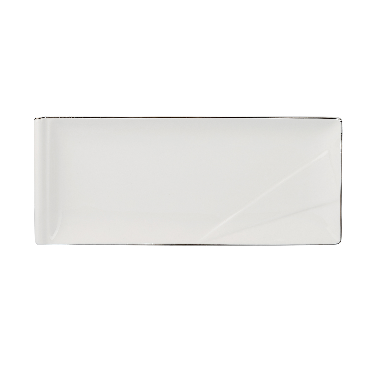 Блюдо прямоугольное GIPFEL ASTORIA 51652. Блюдо размером 25x10,5 см. Изготовлено из костяного фарфора белого цвета с серебристым ободком по краю. При сервировке сочетается с другой посудой коллекции ASTORIA.