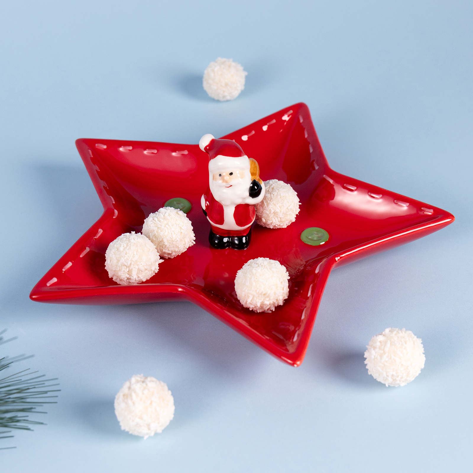 Красный, зелёный, белый — цвета, которые дышат радостью. Каждое блюдо — с мини-фигуркой Деда Мороза или Снеговика, словно вышедших из рождественской истории, чтобы стать частью вашего дома. Сердце, звезда, прямоугольник с декоративными швами — формы, полные любви и внимания. Гладкая глазурь, приятная на ощупь, с аккуратной росписью и объёмными элементами — всё здесь создано для того, чтобы радовать глаз и душу.