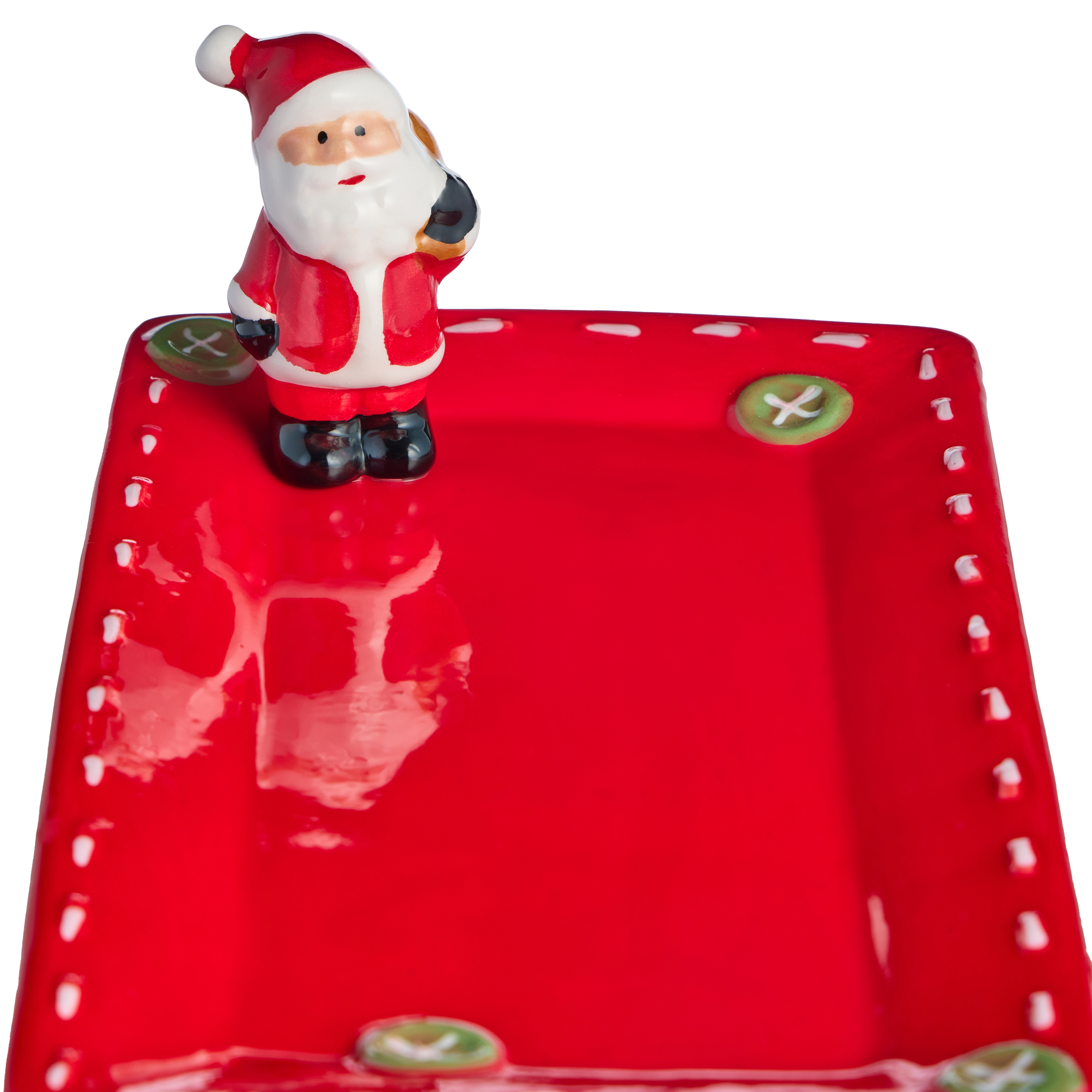 Красный, зелёный, белый — цвета, которые дышат радостью. Каждое блюдо — с мини-фигуркой Деда Мороза или Снеговика, словно вышедших из рождественской истории, чтобы стать частью вашего дома. Сердце, звезда, прямоугольник с декоративными швами — формы, полные любви и внимания. Гладкая глазурь, приятная на ощупь, с аккуратной росписью и объёмными элементами — всё здесь создано для того, чтобы радовать глаз и душу.