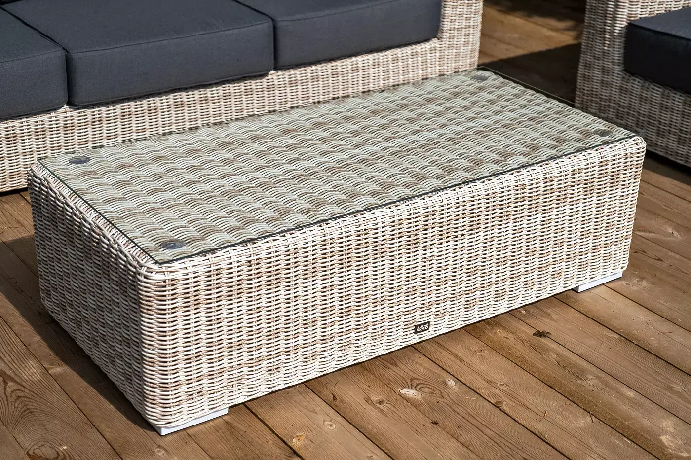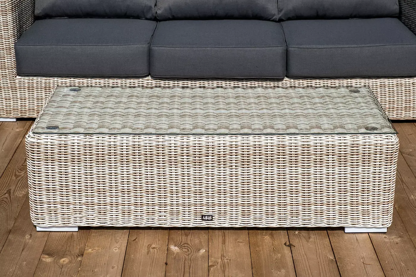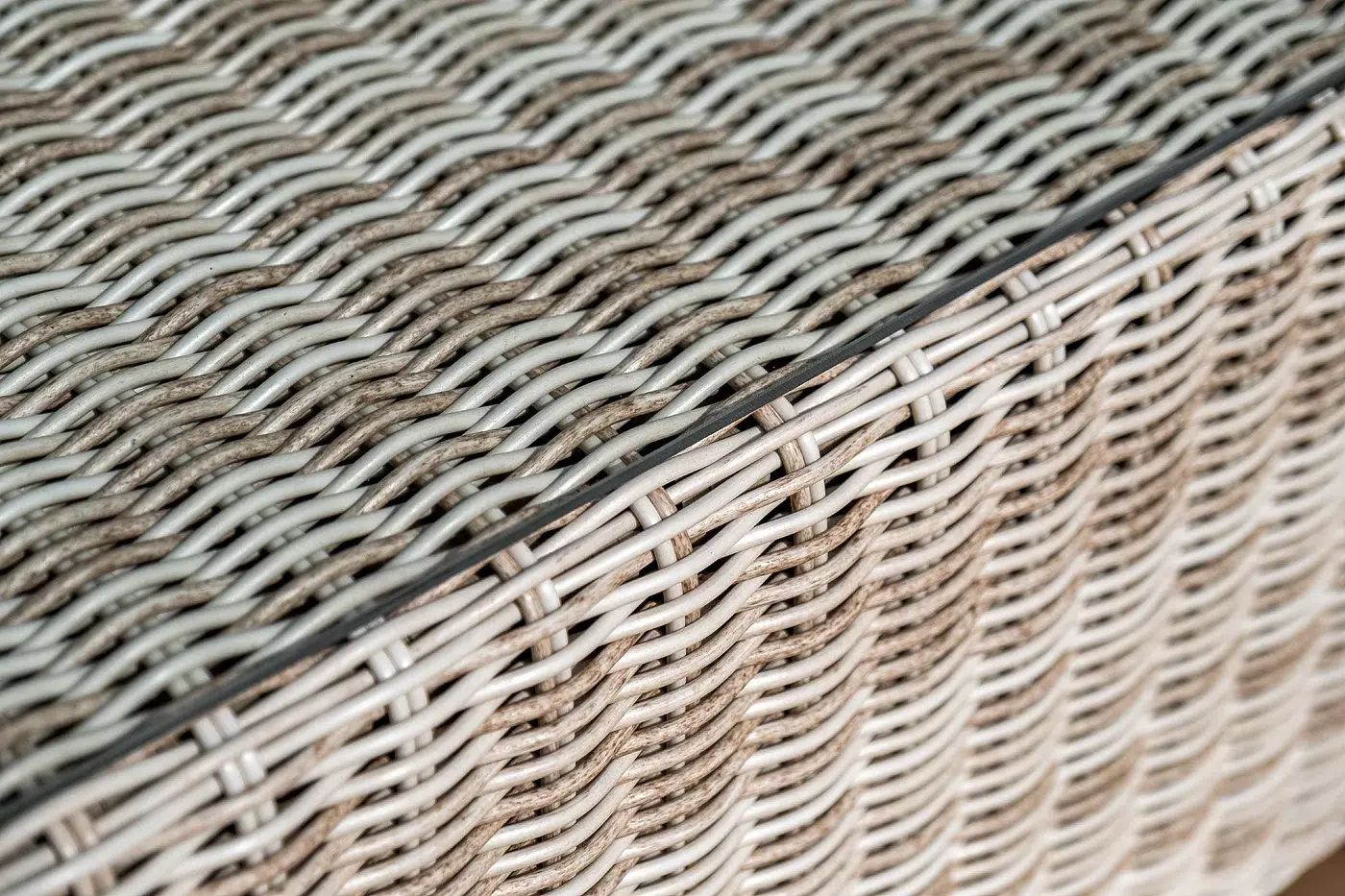 Поверхность плетеного столика представляет столешница из закаленного стекла – 5 мм.