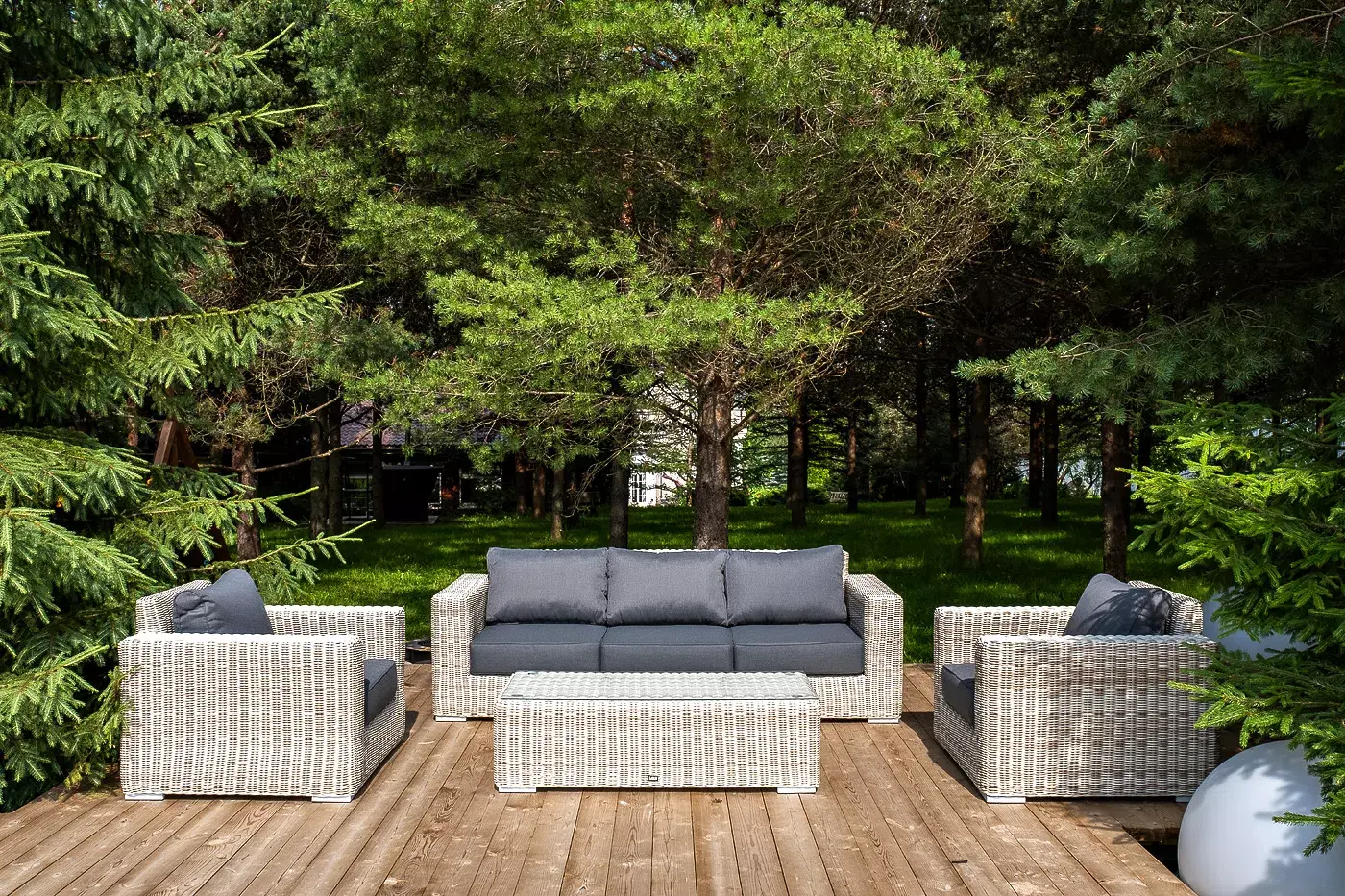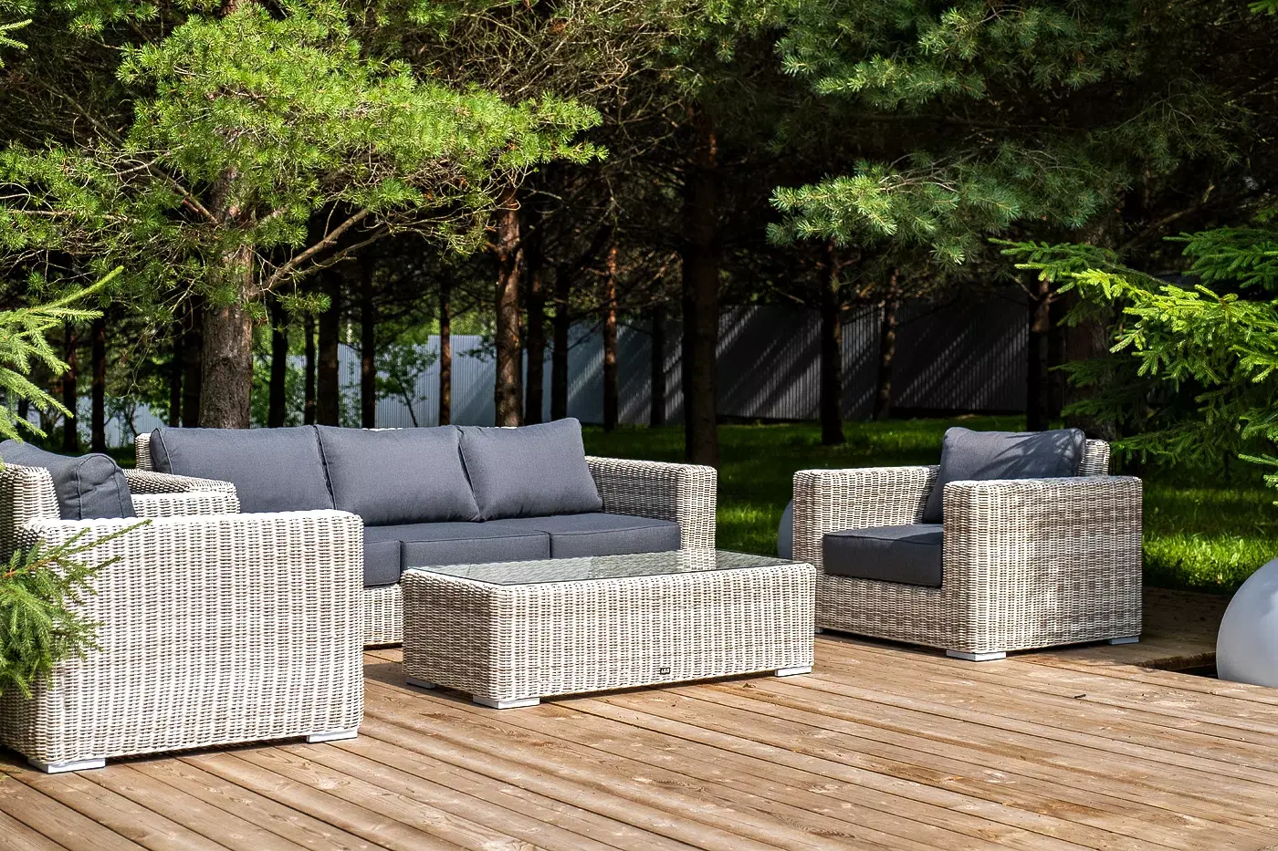 Комплект «Боно» с плетением из искусственного круглого ротанга для обустройства лаунж-зоны.