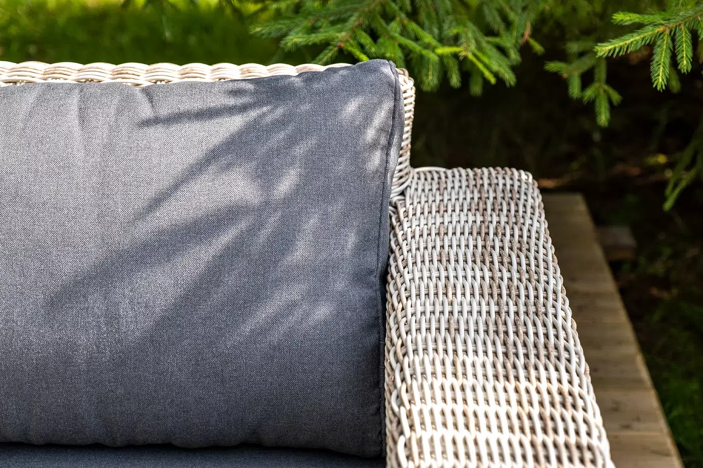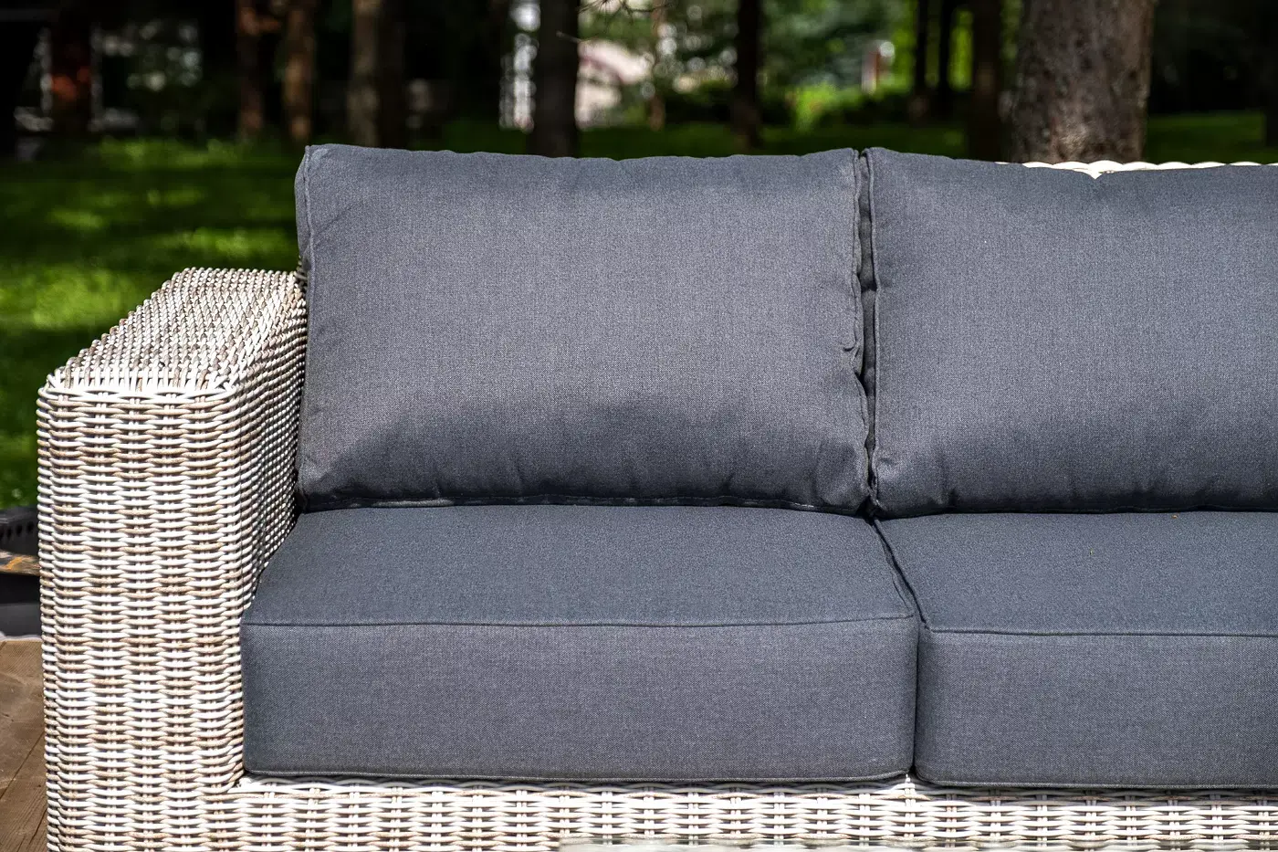 На креслах и диване предусмотрены мягкие подушки, съёмные чехлы которых пошиты из полиэстера, плотностью 300гр/м2. Ткань в обязательном порядке пропитывается влагоотталкивающими составами.