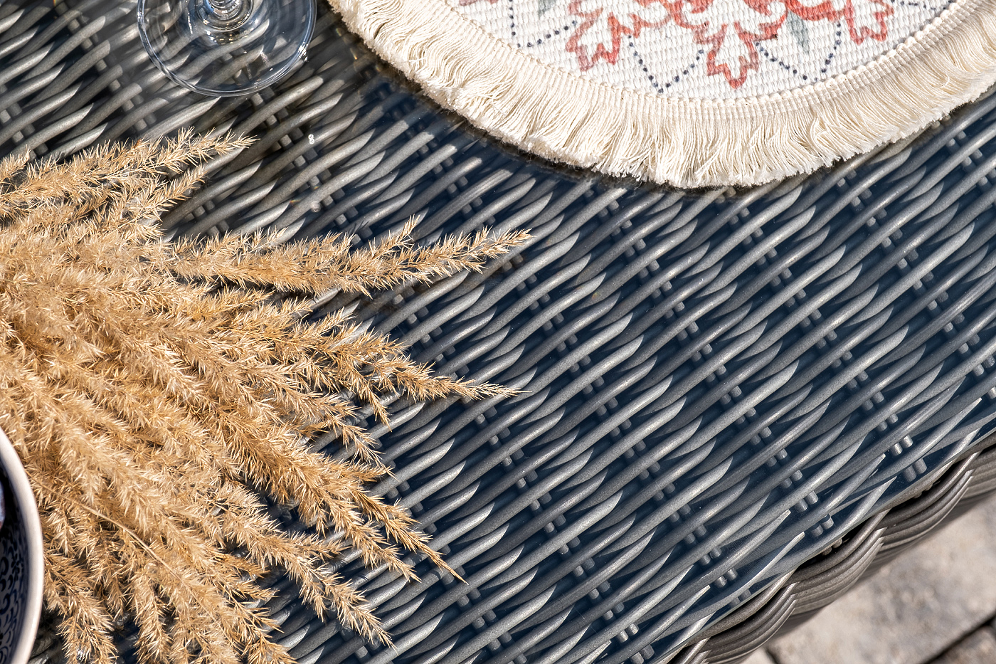 Поверхность плетеного столика представляет столешница из закаленного стекла – 5 мм.
