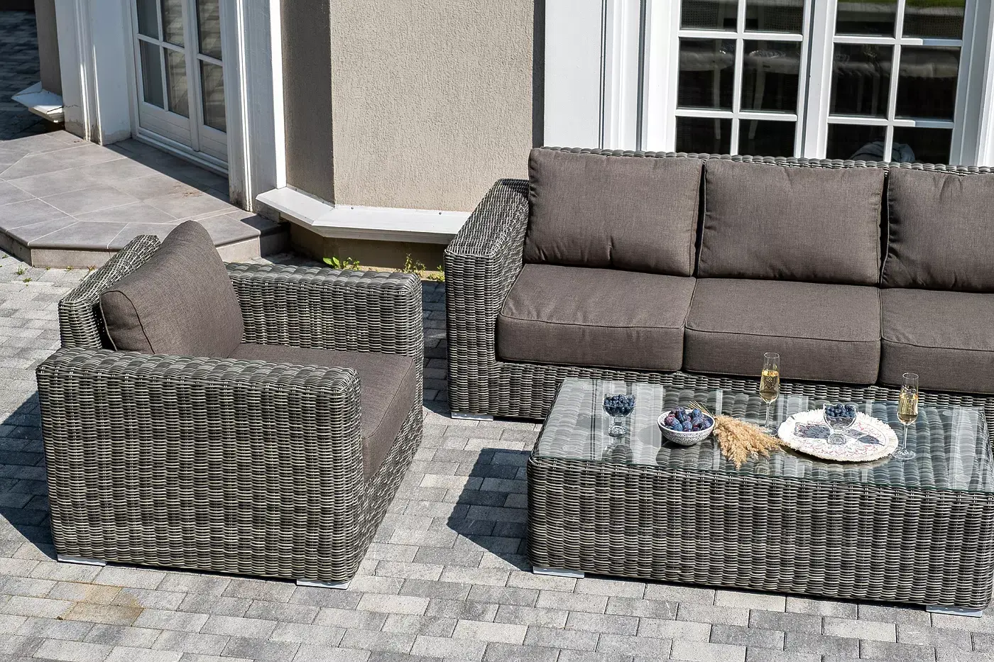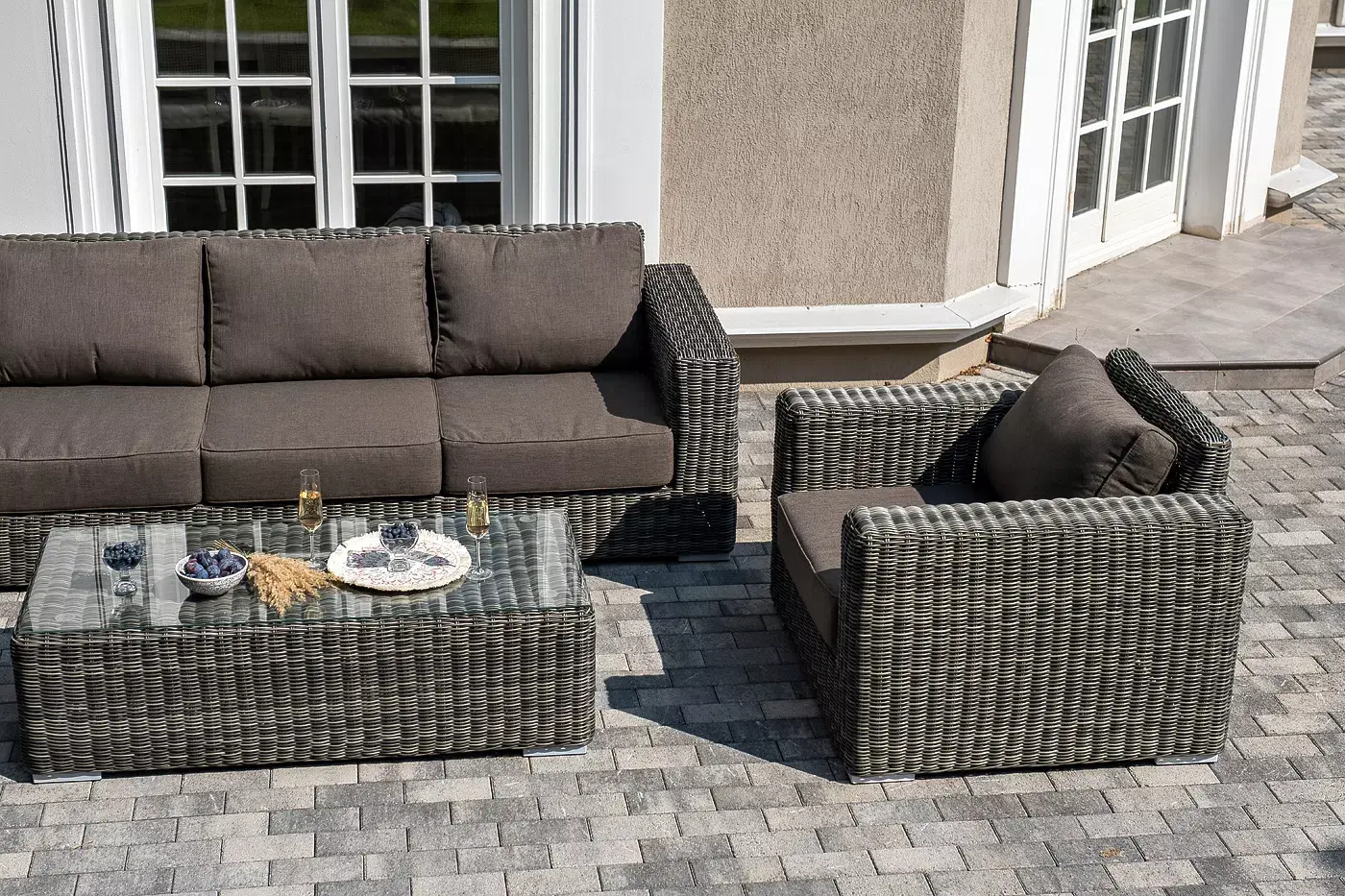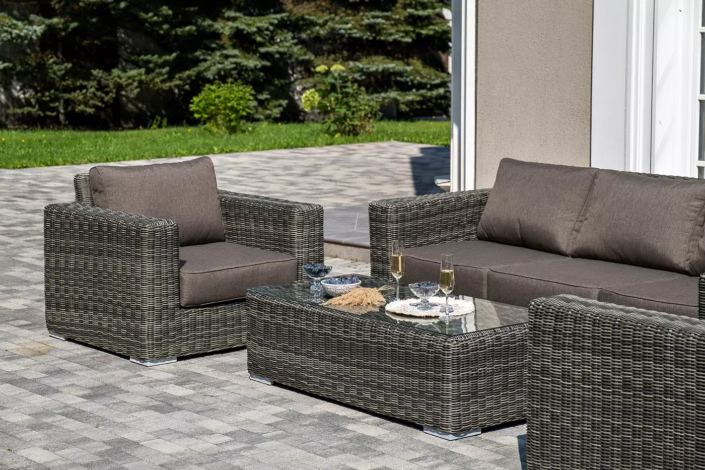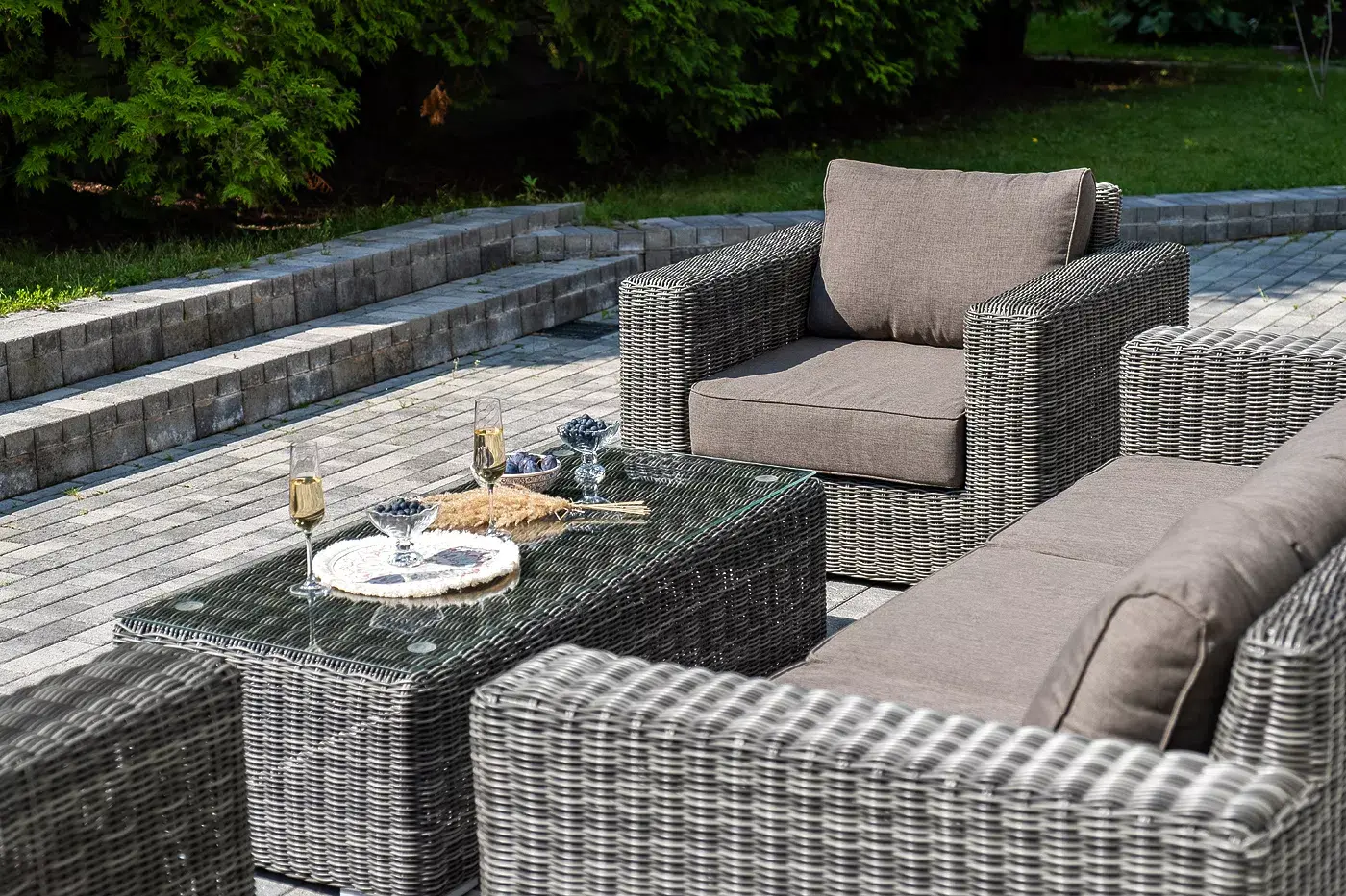 Комплект «Боно» с плетением из искусственного круглого ротанга для обустройства лаунж-зоны.