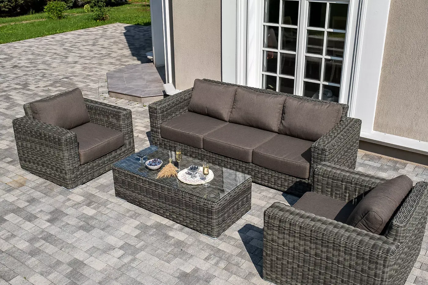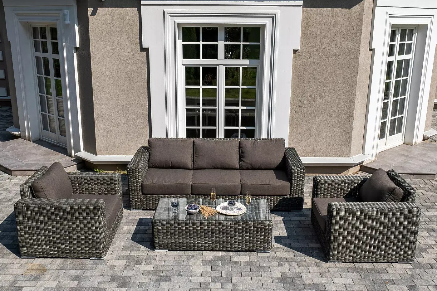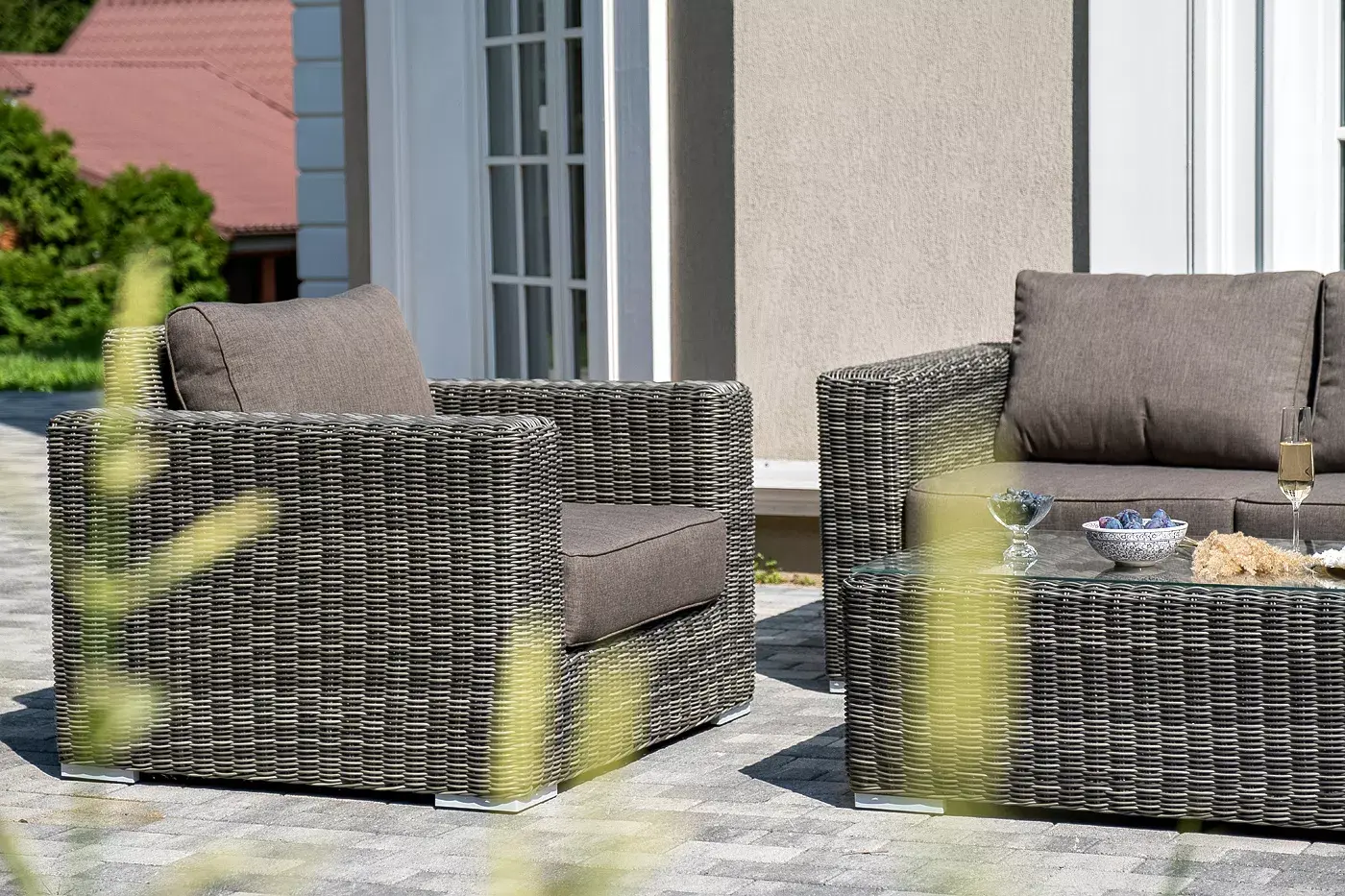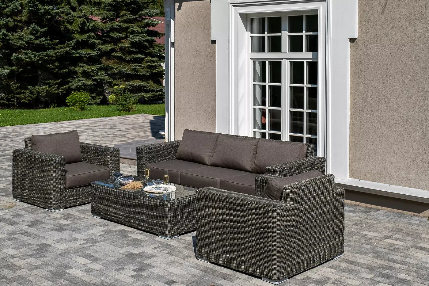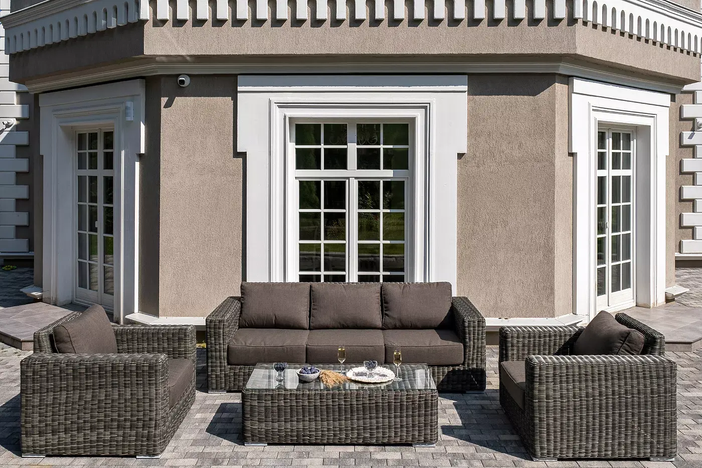 Комплект «Боно» с плетением из искусственного круглого ротанга для обустройства лаунж-зоны.