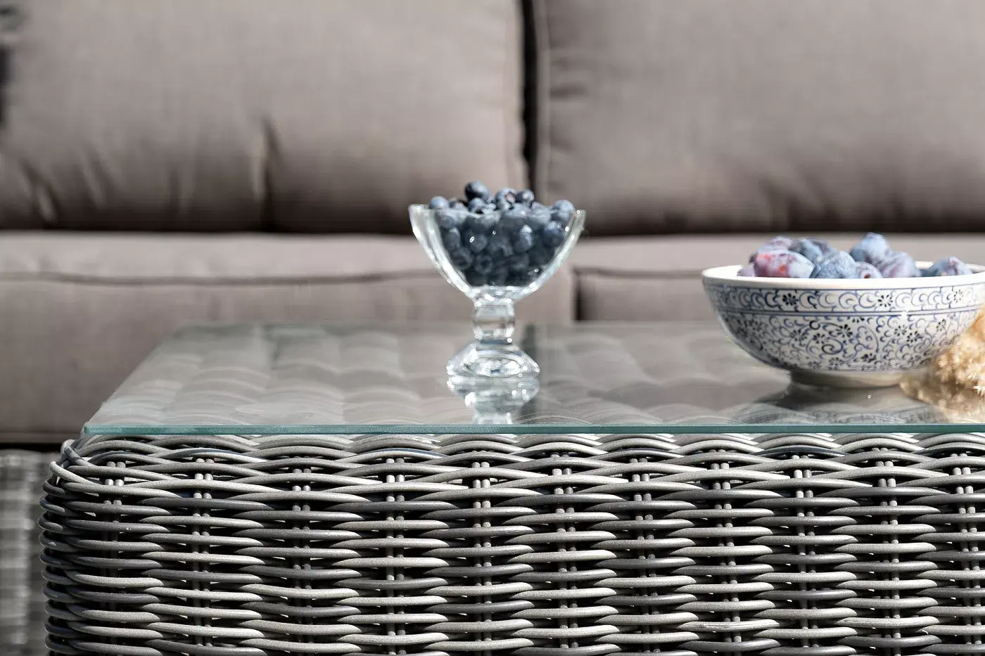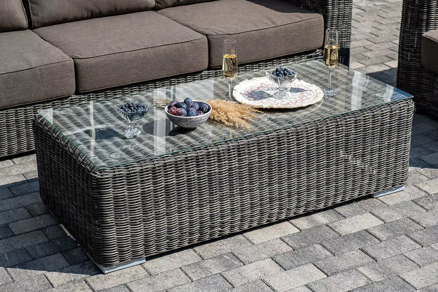 Поверхность плетеного столика представляет столешница из закаленного стекла – 5 мм.