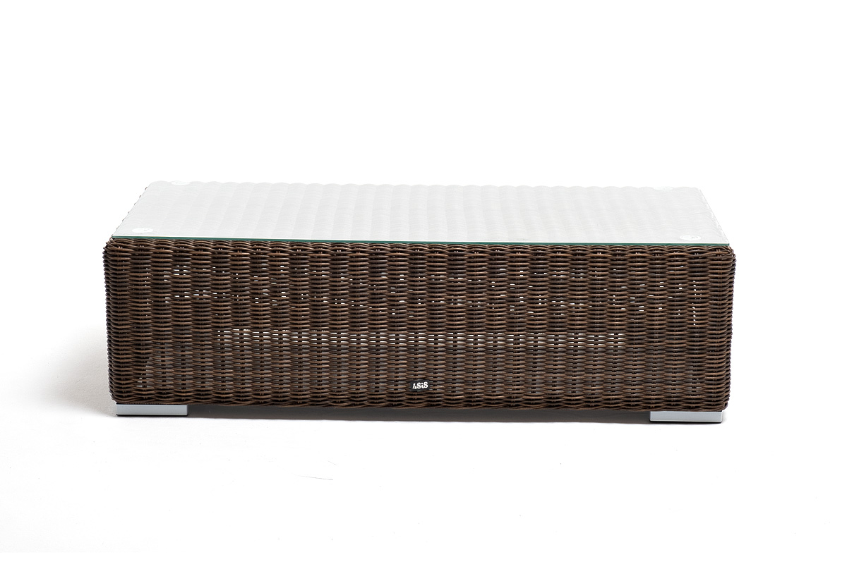 Плетеный столик представлен в коричневом цвете.