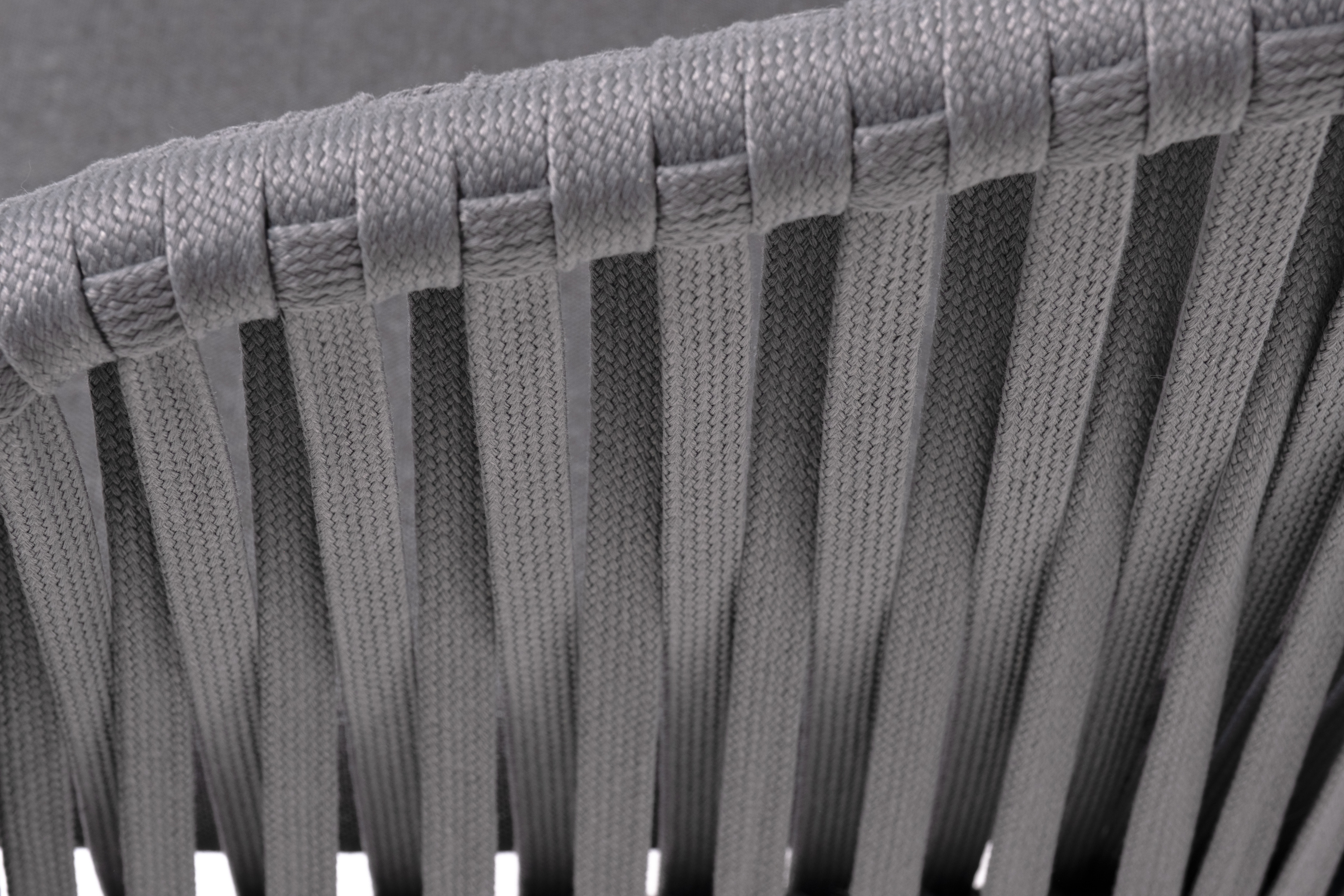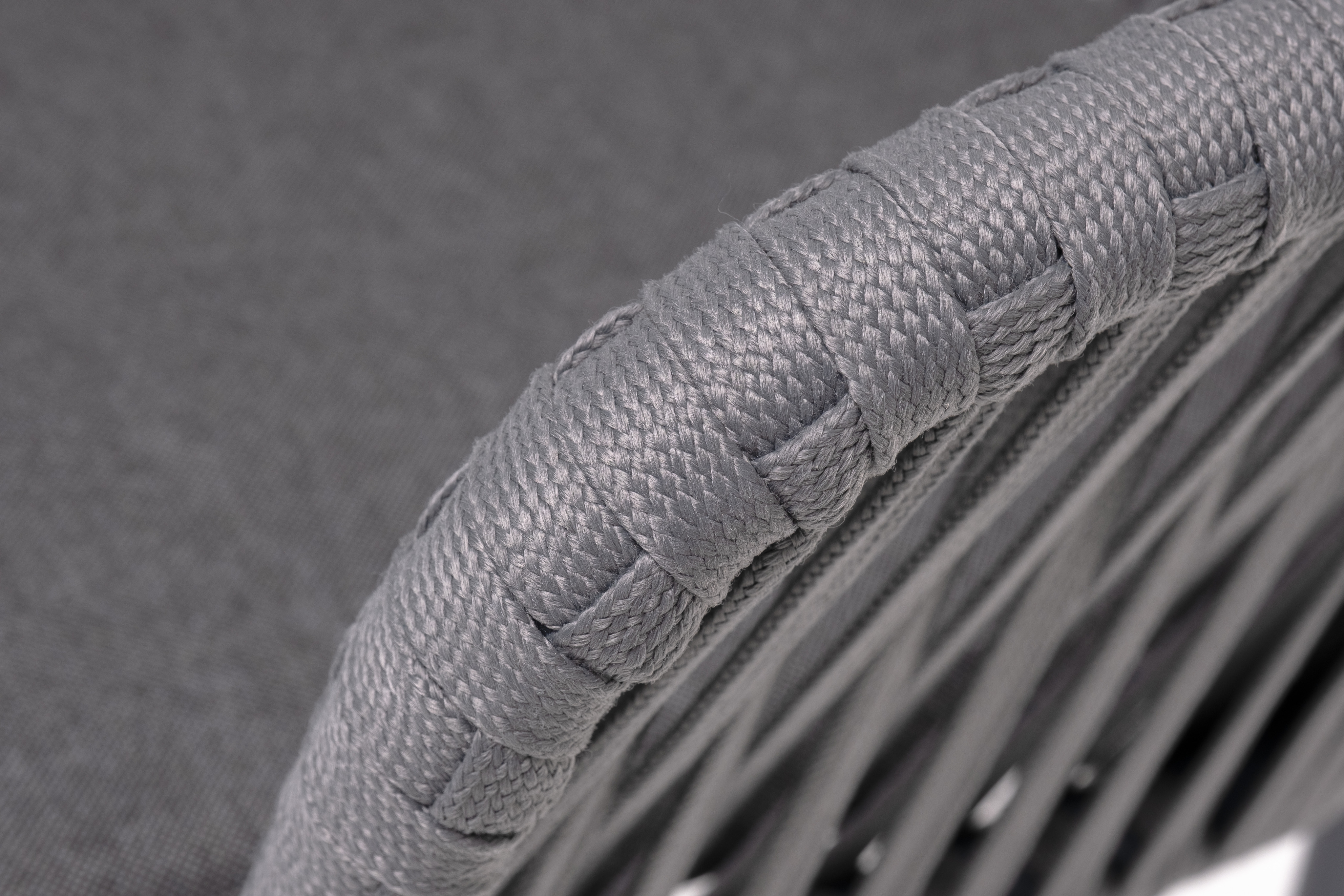 Каркас вручную оплетен серым роупом - эластичными синтетическими лентами из высокопрочных полиэфирных волокон.