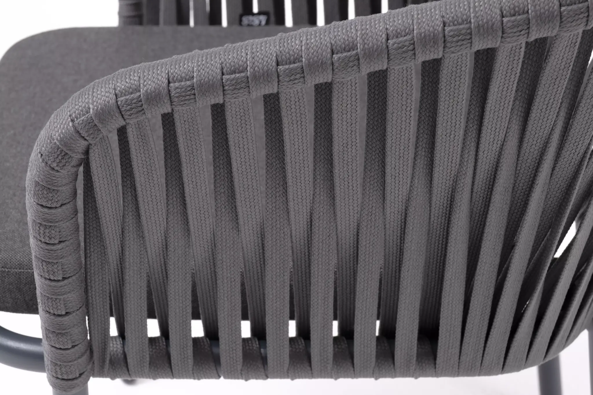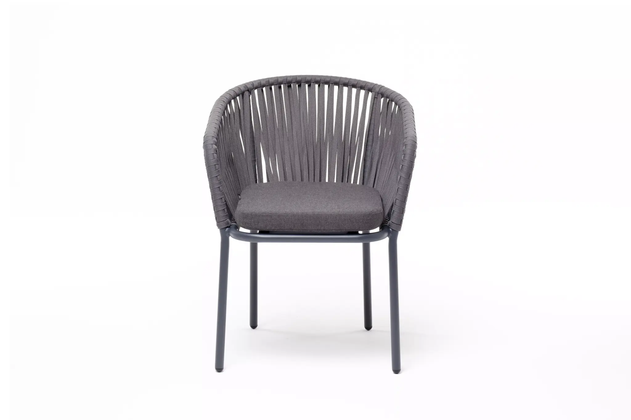 Стул «Бордо» изготовлен из алюминиевого каркаса, окрашенного порошковой износостойкой краской в темно-серый (RAL7024) цвет.