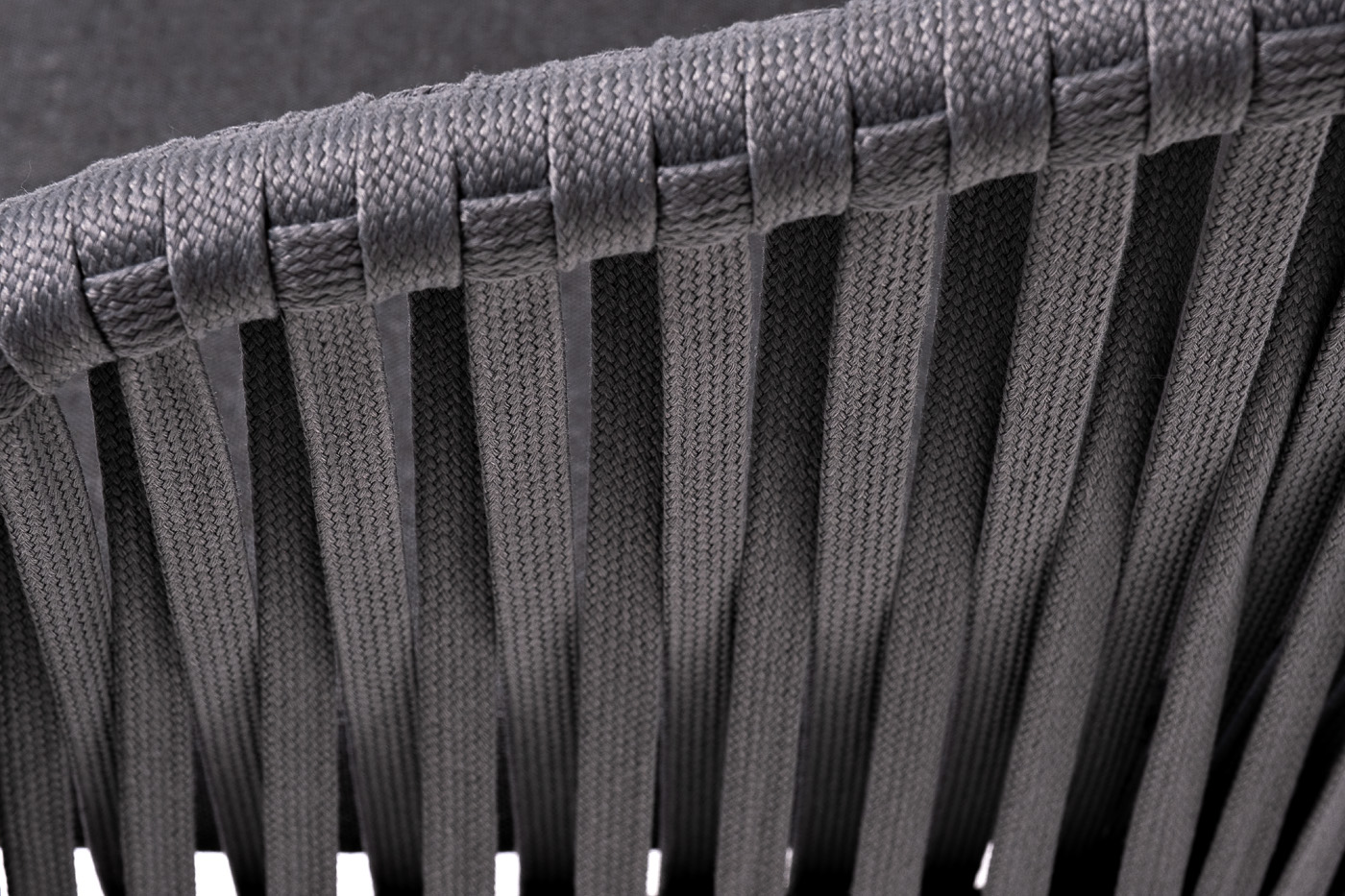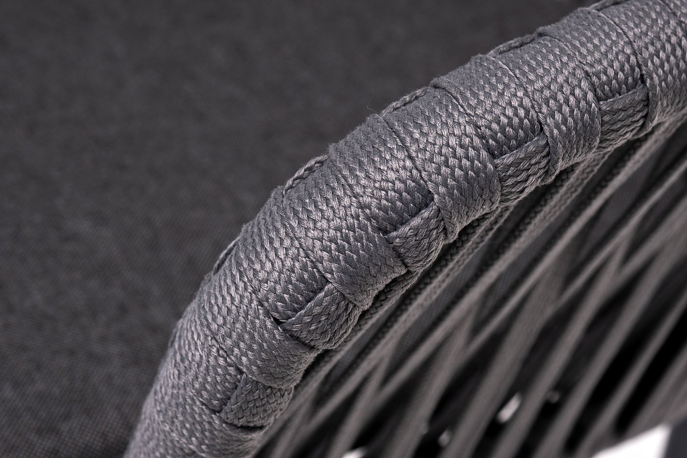 Каркас вручную оплетен серым роупом - эластичными синтетическими лентами из высокопрочных полиэфирных волокон.