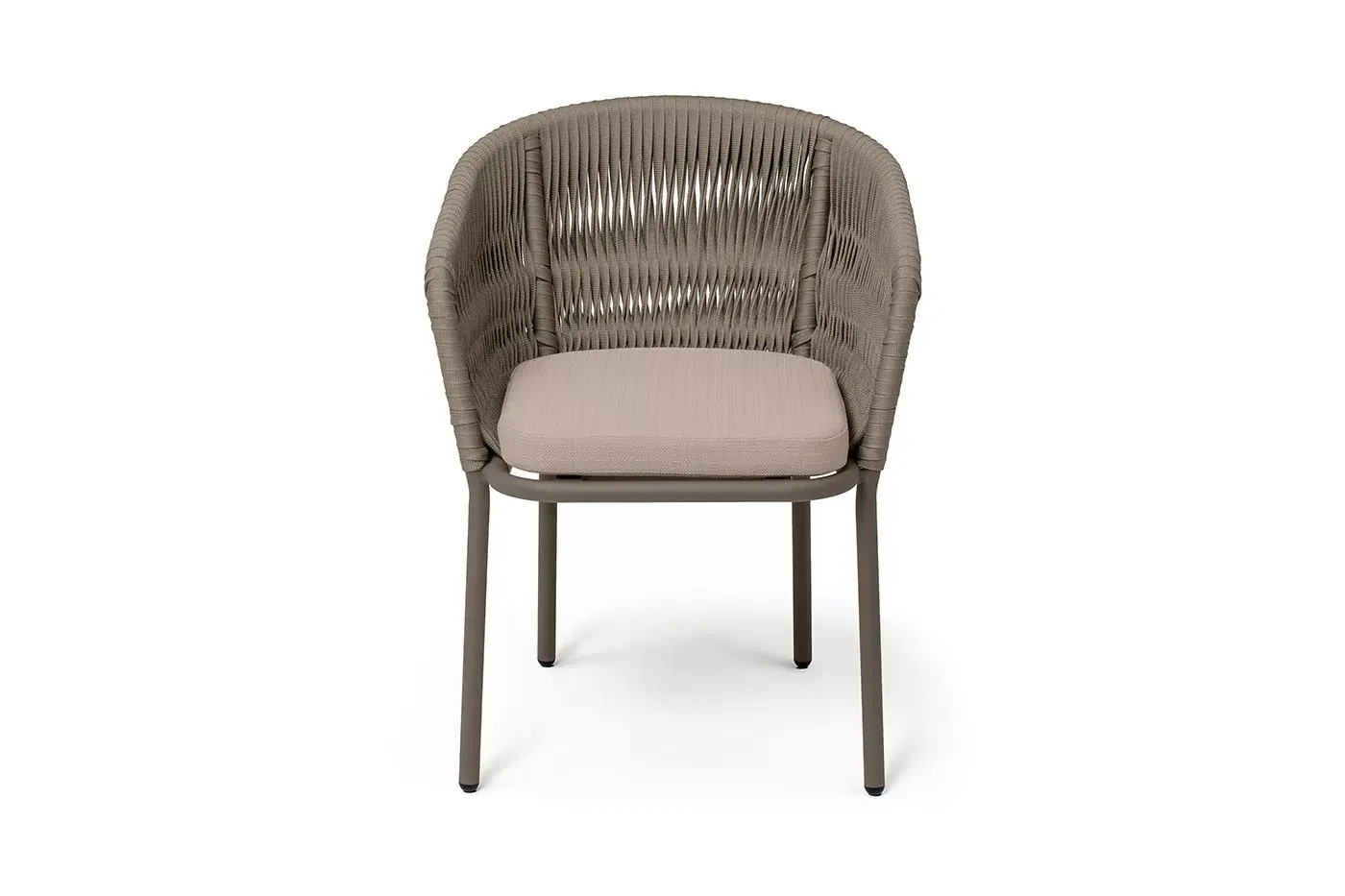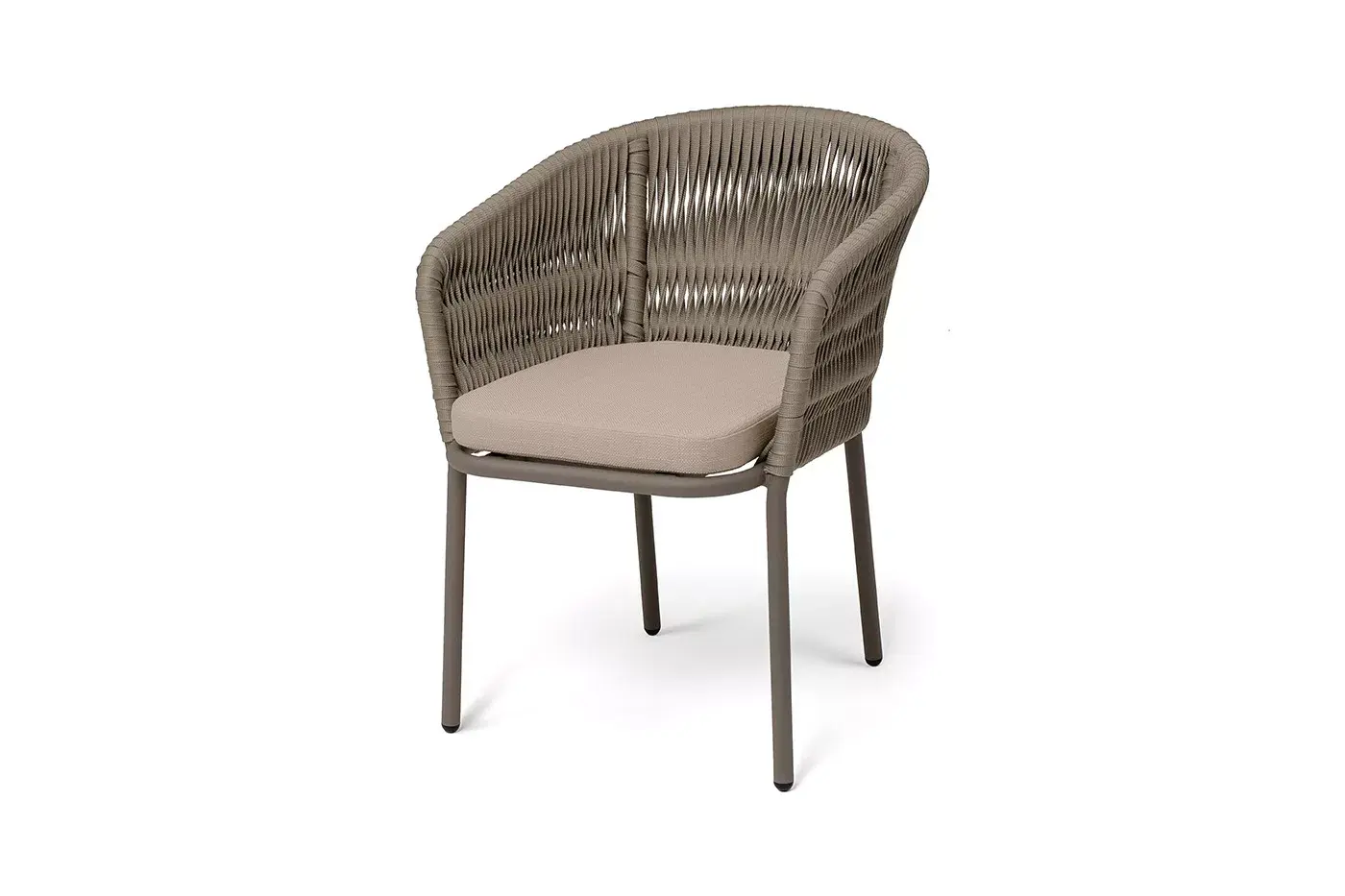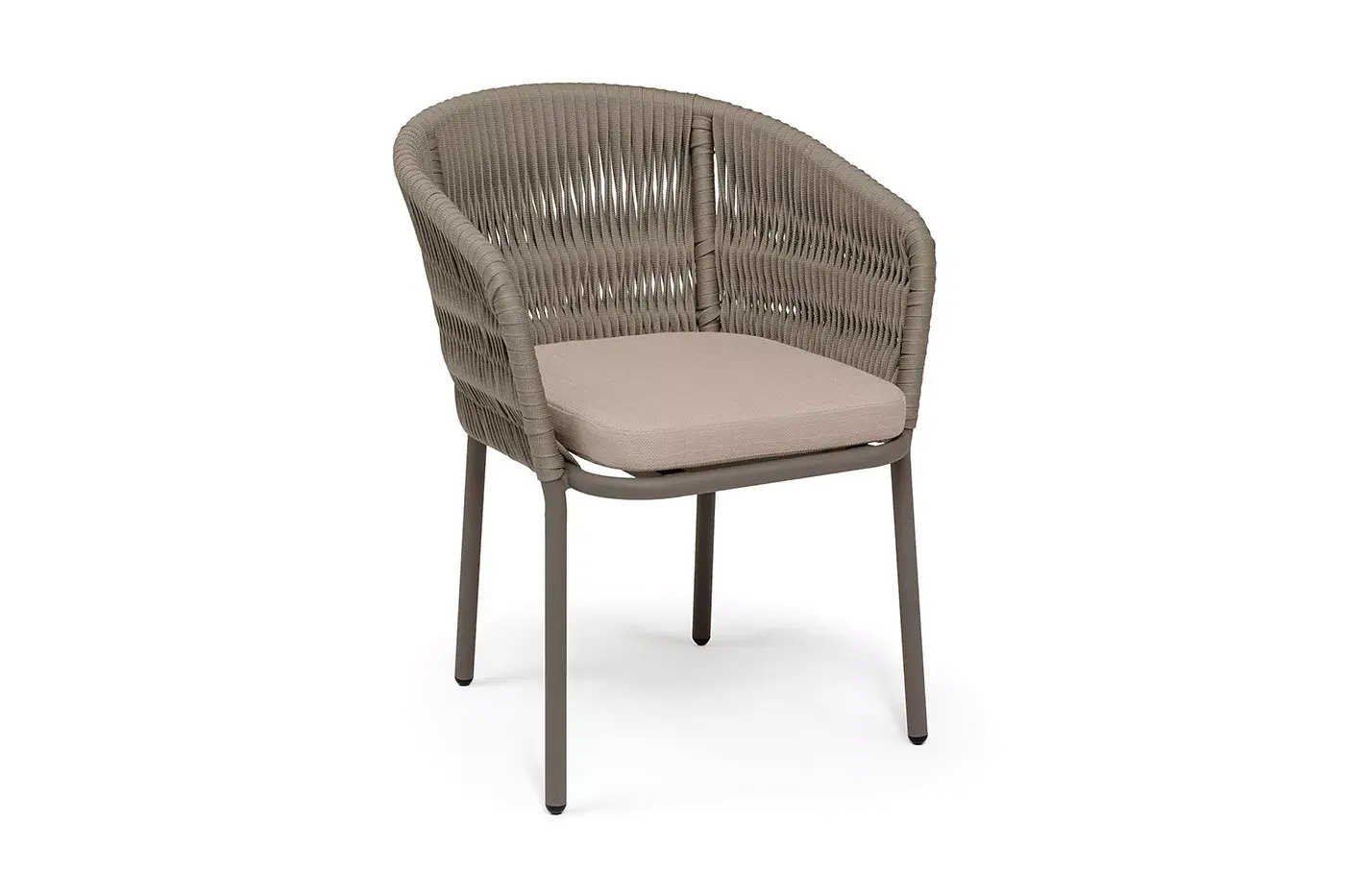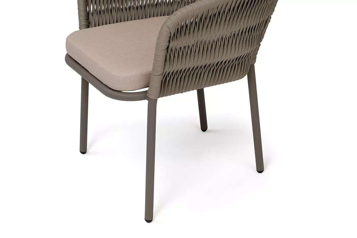 Стул «Бордо» изготовлен из алюминиевого каркаса, окрашенного порошковой износостойкой краской в бежево-серый (RAL7006) цвет.