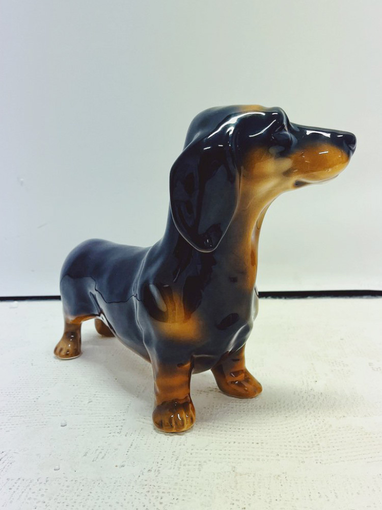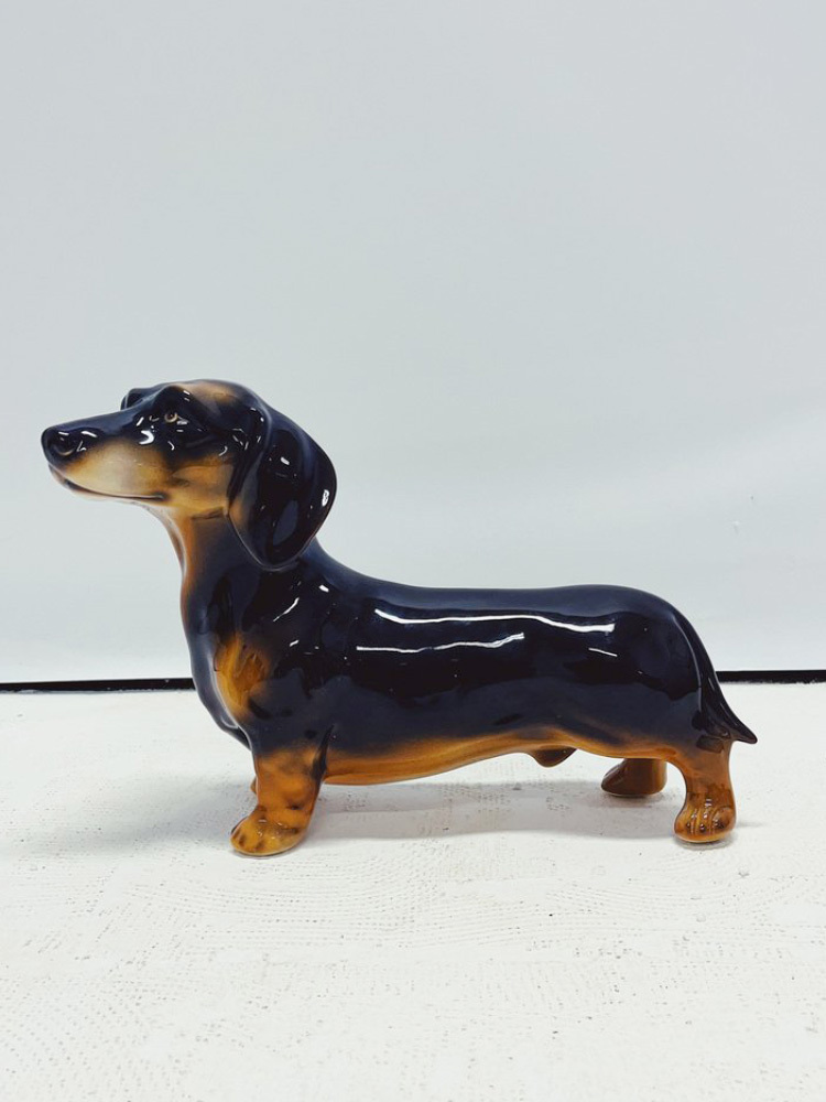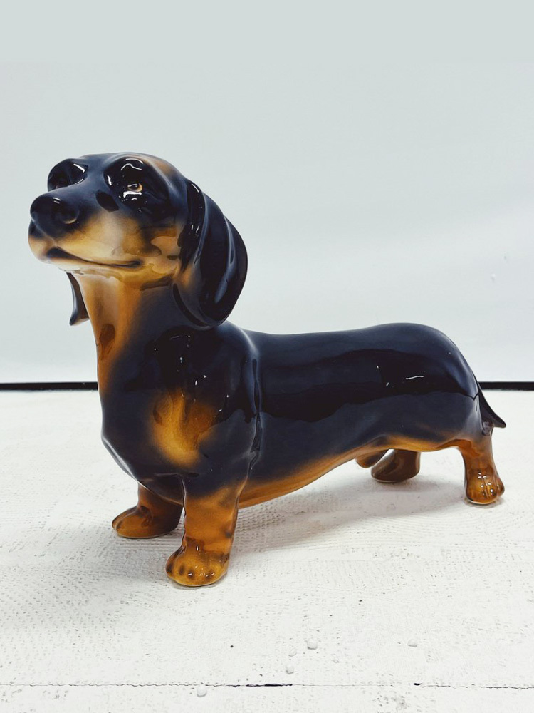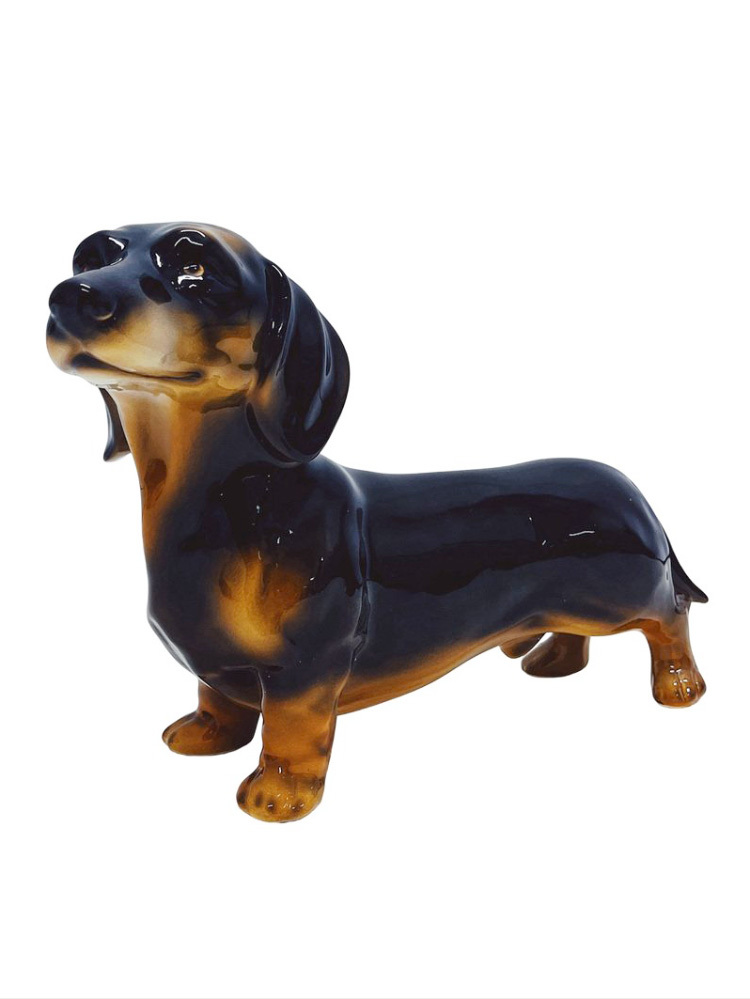 Скульптура ростовая интерьерная собаки "Такса" темно-коричневая