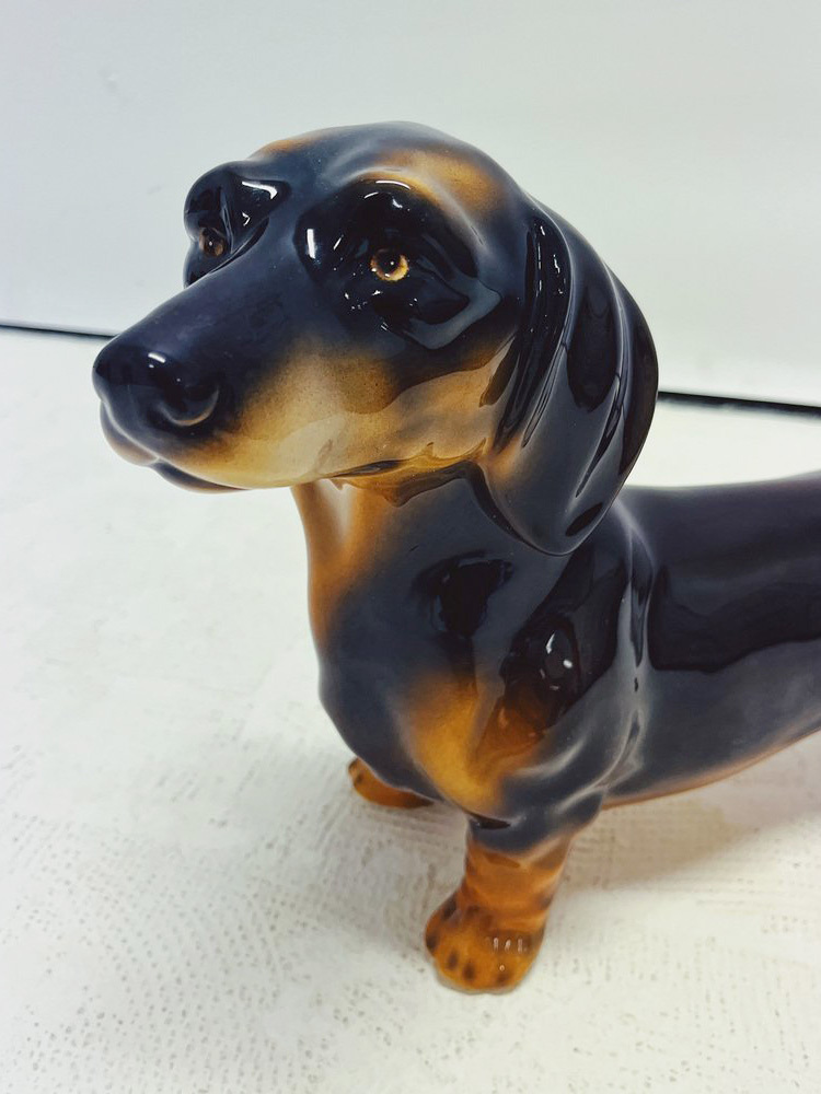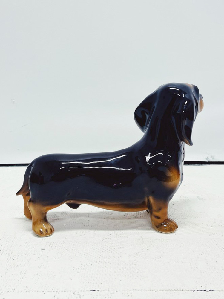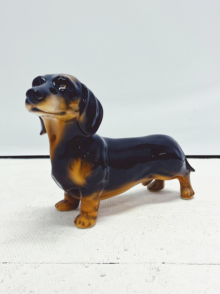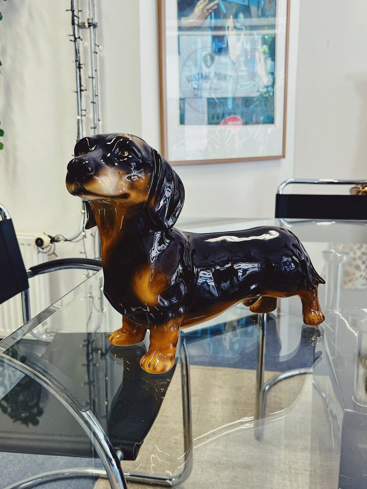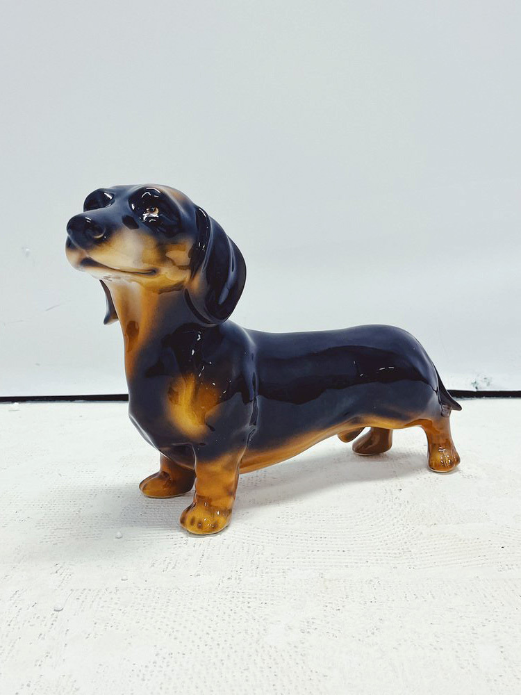Скульптура ростовая интерьерная собаки "Такса" темно-коричневая