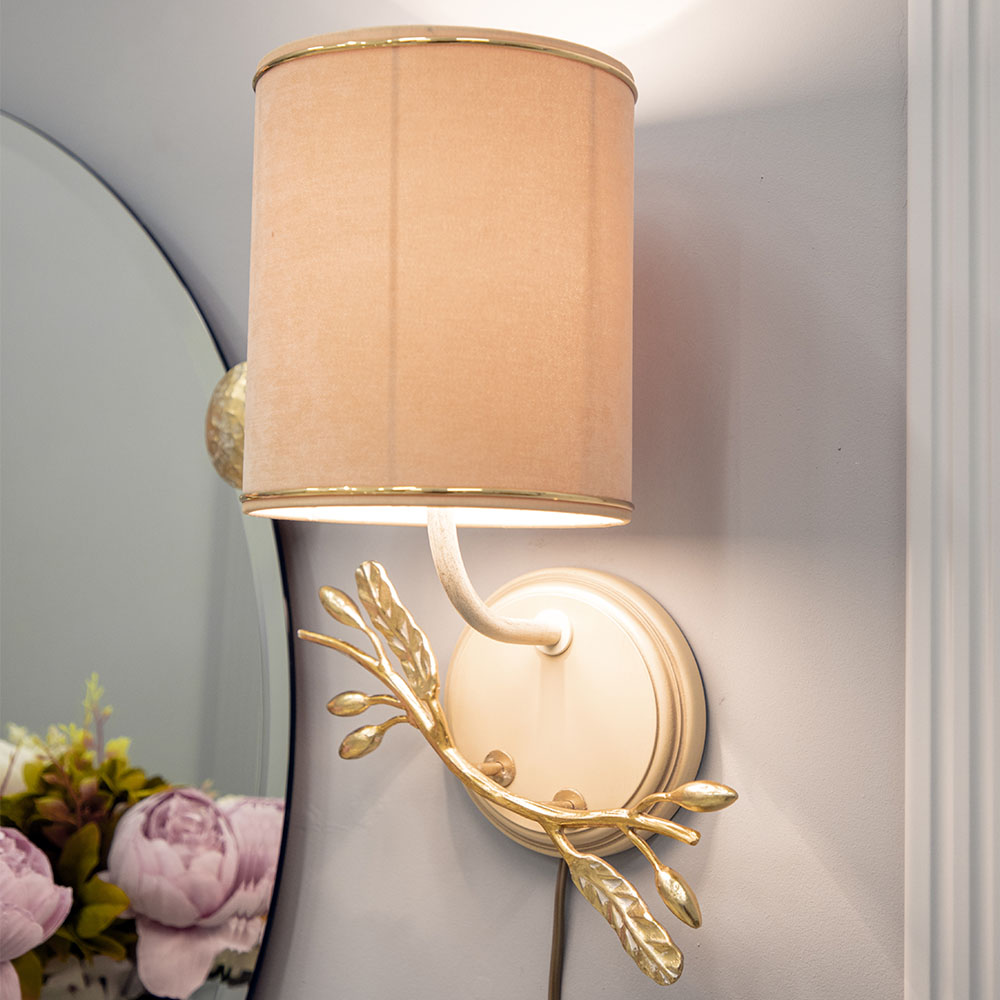 Бра настенный светильник Oliva Branch (Олива Бранч) Айвори левое Мраморное золото с абажуром Терра Беж-2