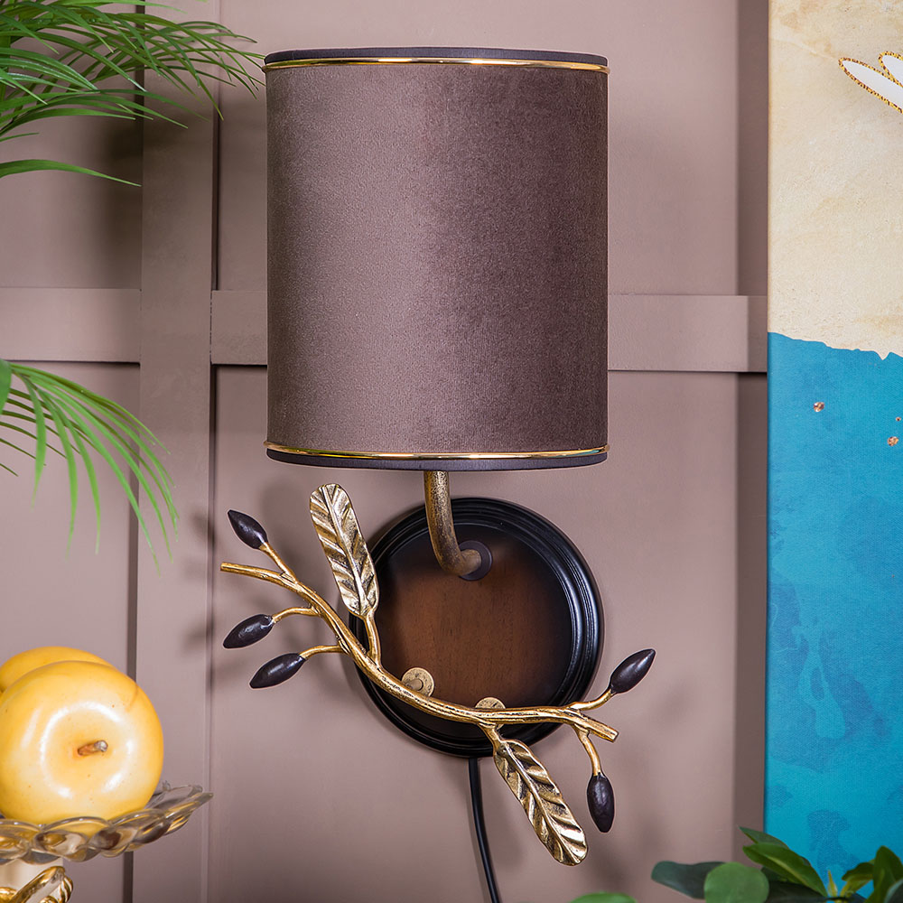 Бра настенный светильник Oliva Branch (Олива Бранч) Каштан Левое Амбер с абажуром Терра Шоколад