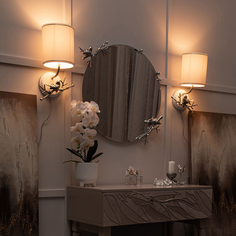 Хотите приютить у себя очаровательную птичку-зарянку? Купите бра из коллекции «Терра» от BOGACHO, и она будет радовать Вас своей утренней песней каждый день!