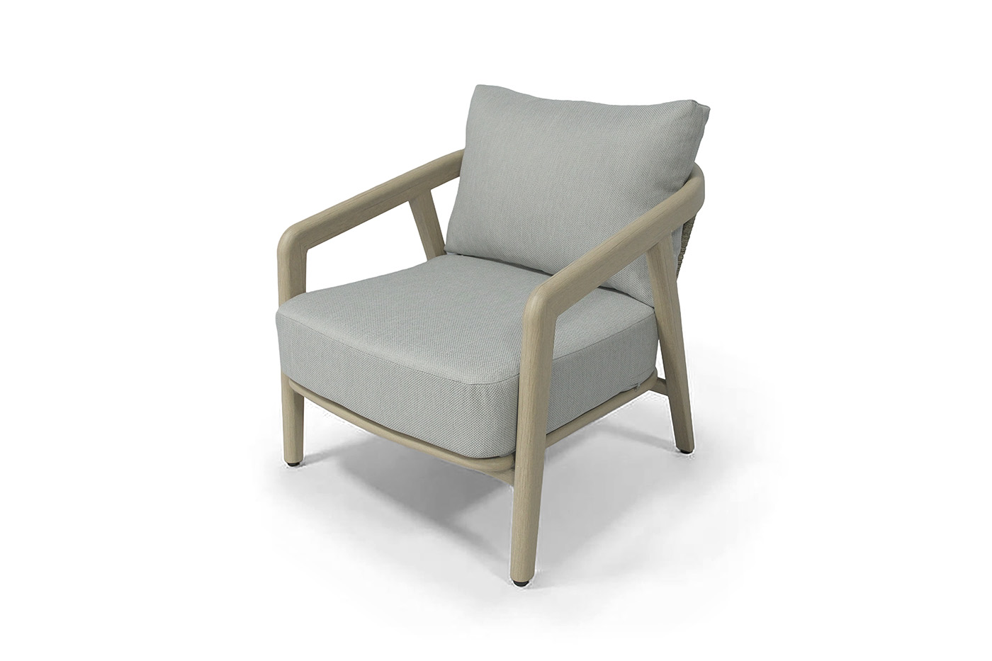 Прочный, но легкий алюминиевый каркас, стилизованный под холодное бежевое дерево - гарантирует долгий срок службы и надежность. Изящная оплетка из круглого искусственного ротанга серого цвета, напоминающая натуральное плетение, дарит неповторимую текстуру и приятные тактильные ощущения, создавая атмосферу мягкости и тепла.