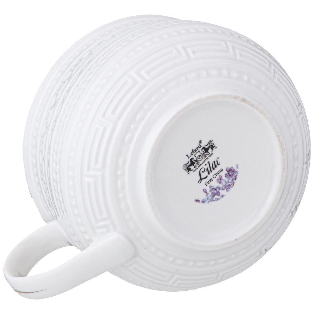 «LILAC - Сирень» ТМ LEFARD — уникальная коллекция лёгкого, тонкого, прозрачного и прочного фарфора. Изящная рельефная сетка с красивым кантом, сверкающая глазурь и ветка сирени, распространяющая вокруг нежное благоухание, создающая романтическое настроение. Тонкая золотая полоса, нанесенная на изделие вручную, собирает все достоинства коллекции в единое целое. Идеально подходит для всех случаев сервировки стола. Представлена чайным сервизом, чайными парами удобных объемов, десертными тарелками. Отличный подарок. Не рекомендуется использовать в микроволновой печи, мыть в посудомоечной машине. Прошла сертификацию. Безопасна для контакта с пищевыми продуктами.