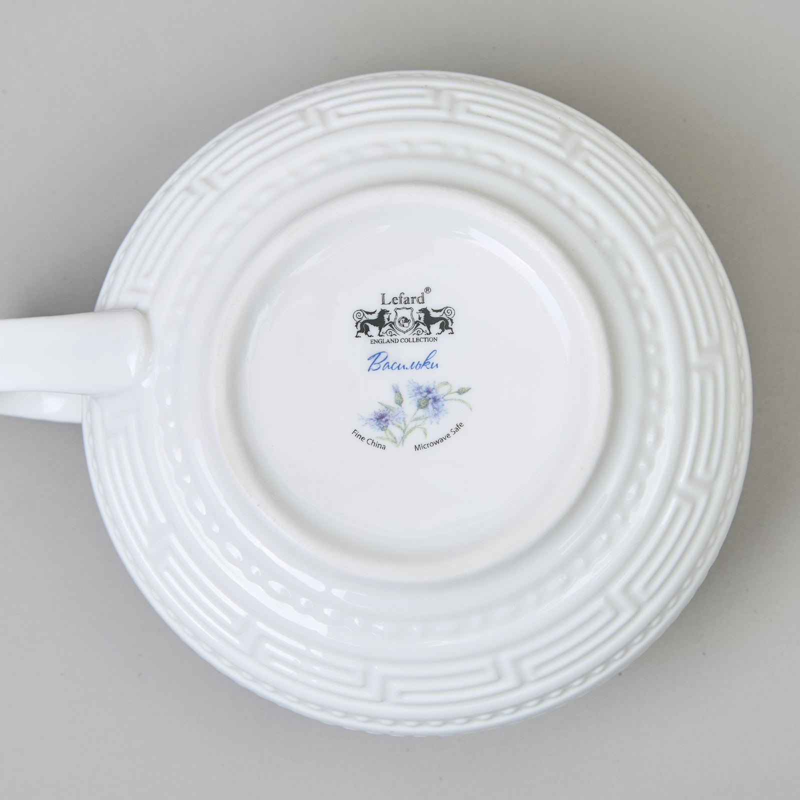 «Васильки» ТМ LEFARD - уникальная коллекция лёгкого, тонкого, прозрачного и прочного фарфора. Изящная рельефная сетка с красивым кантом, сверкающая глазурь. Эксклюзивный дизайн полевого василька небесного цвета, создающего романтическое настроение. Оригинальное размещение дизайна на рельефной части изделий, что создает дополнительную игру рисунка и объем. Широкий ассортимент позволяет сервировать обеденный стол, вечернее чаепитие – идеальный вариант для всех случаев сервировки. Коллекция представлена чайным сервизом, чайными парами удобных объемов, десертными тарелками. Стильная цветная коробка, прекрасный подарок. Все изделия прошли сертификацию. Безопасны для контакта с пищевыми продуктами. Можно смело использовать в микроволновой печи и мыть в посудомоечной машине.