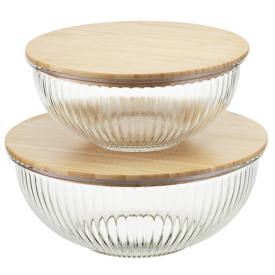 Чаша стеклянная с бамбуковой крышкой Harmy, 3,5 л