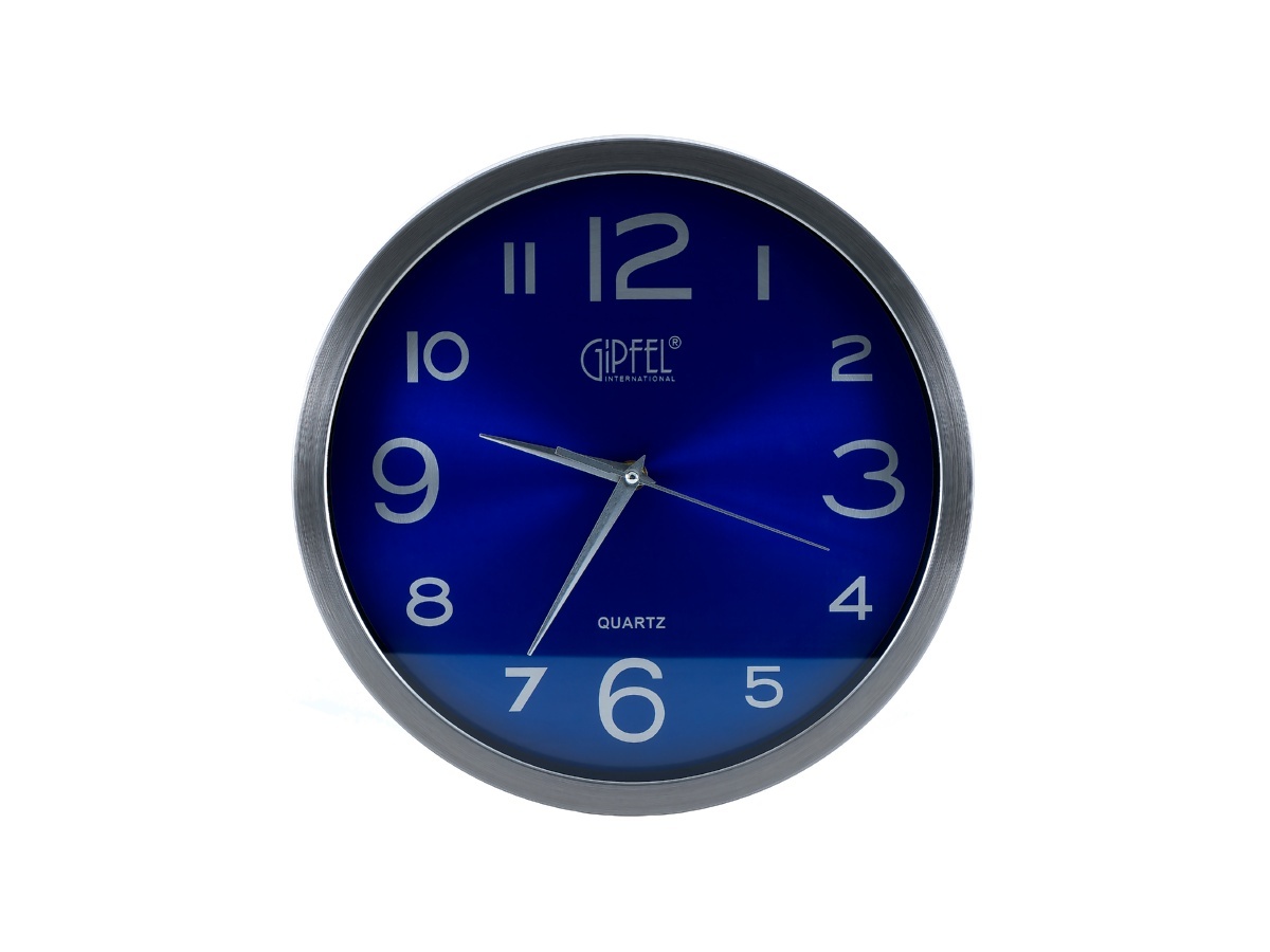 2015 Gipfel Часы настенные BERND, диаметр 30 см. Материал: нерж.сталь, стекло. Цвет рамки: стальной. Цвет циферблата: синий.