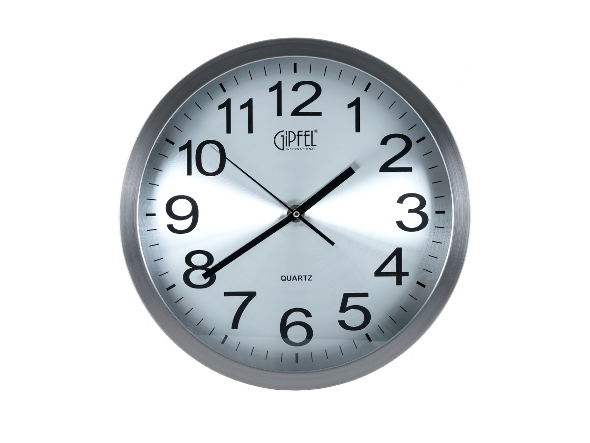 2016 Gipfel Часы настенные BERND, диаметр 40 см. Материал: нерж.сталь, стекло. Цвет рамки: стальной. Цвет циферблата: белый.