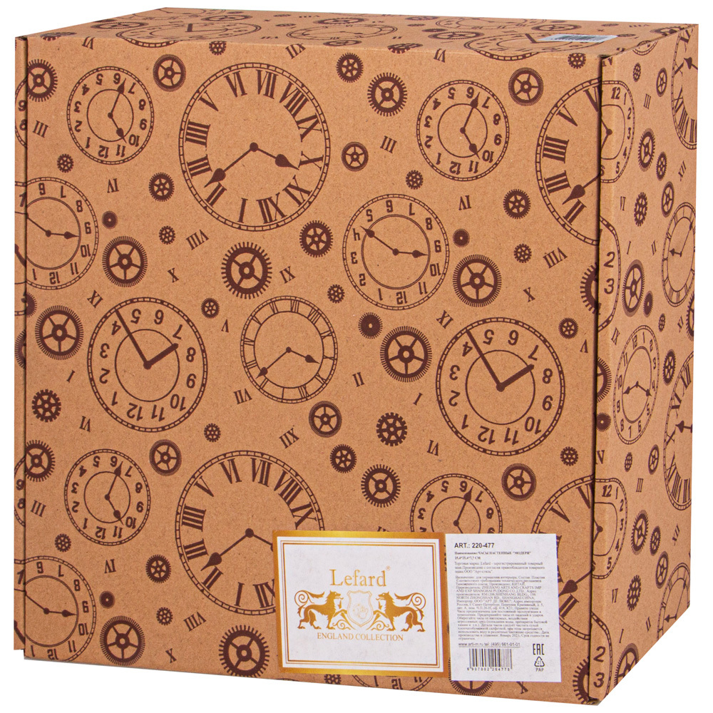 Часы настенные кварцевые выполнены из пластика. Часы отлично украсят интерьер гостиной, спальни, офиса или кухни. Также послужат отличным подарком на любой праздник.