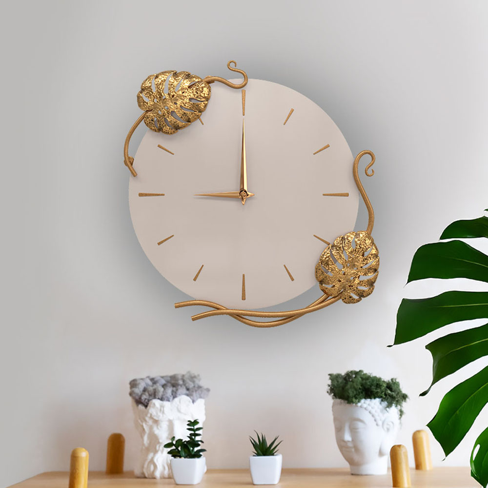Часы настенные интерьерные "Monstera Deliciosa" (Монстера). Настенные часы от BOGACHO это стильный декор для Вашего дома. Они идеально впишутся в интерьер квартиры и создадут уют на даче. Их можно повесить на стену кухни, использовать как украшение на стену для гостиной, особенно в классическом интерьере, лофт, скандинавский стиль. Также можно порадовать коллег, разместив их в кабинете. Большой размер наших интерьерных часов удобен для офиса. Часы работают от 1 батарейки АА (в комплекте). Механизм JL6262-16мм с плавным ходом. Благодаря бесшумному часовому механизму часы можно разместить в детской комнате, звук стрелки не будет мешать сну малышей. Декор часов представляют собой переплетенные листья монстеры и выполнены полностью вручную методом горячей ковки, позолочена мастерами фабрики. Настенные часы просты в уходе, нужно только иногда менять батарейки, в отличие от механических часов, где нужно регулярно заводить часовой механизм. Можно купить часы для гостиниц, отелей, загородных домов, коттеджей, фотостудий, салонов красоты. Они украсят интерьер и станут незаменимым предметом интерьера для полной комплектации как квартир, так и номеров. Часы интерьерные имеют удобное, безопасное крепление на любую стену, включая обои, и отлично дополнят обстановку и декоративные предметы домашнего интерьера или офиса. Крепление входит в комплект.