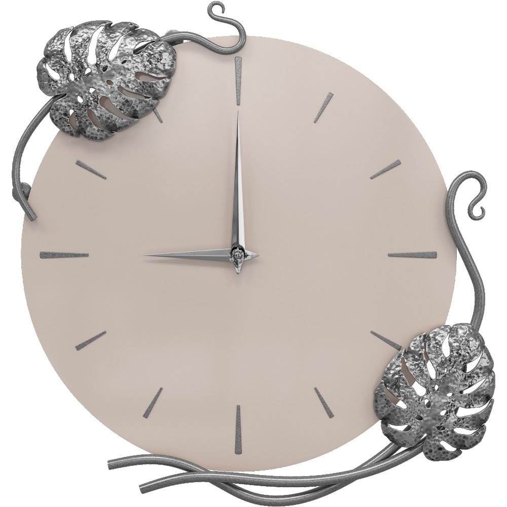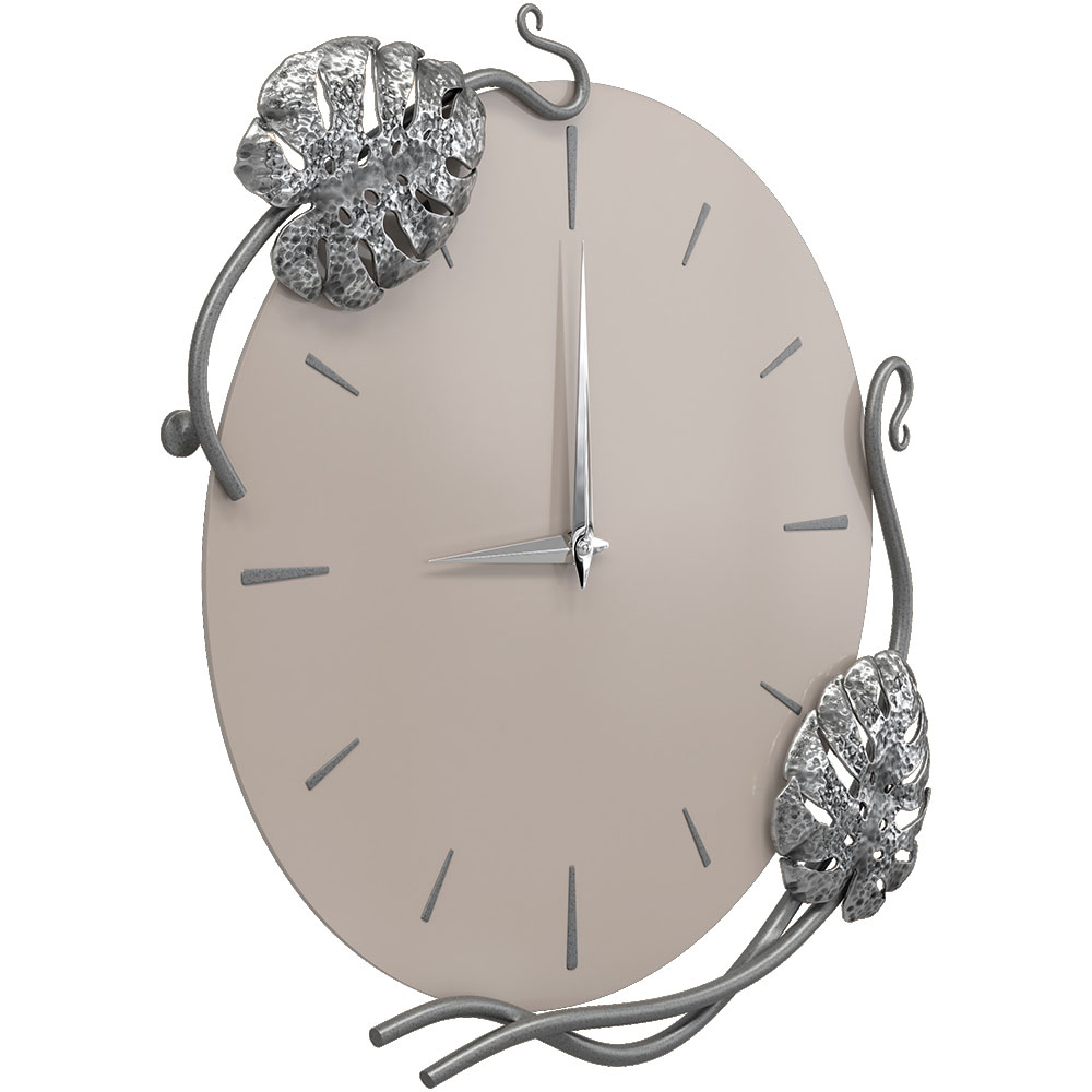Часы настенные Monstera Deliciosa (Монстера) Колор Серый агат Сильвер